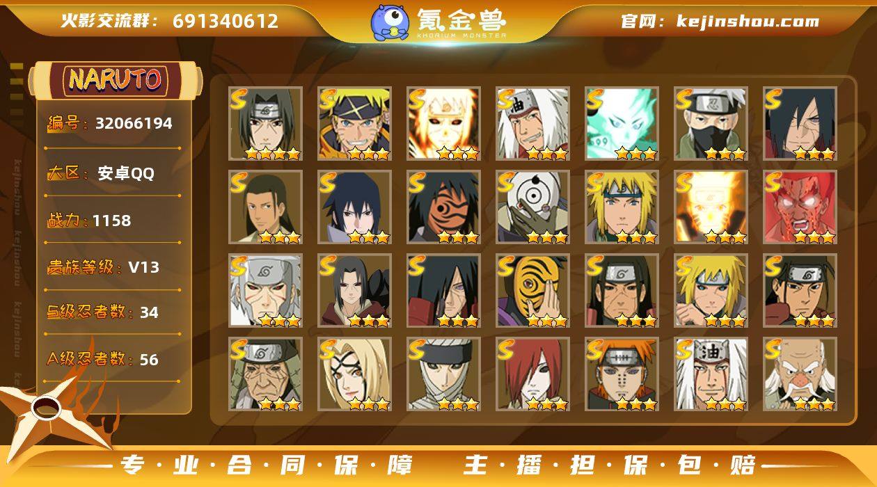 【精品性价比号】y6676 战力1155w 34s 55a 6000金币+1000限时点券 3个328点券A+5个198点券A 四星须佐鼬 51片三代火影 75片斑 49片十尾带土 40片半藏 52片天道超 75片桃式