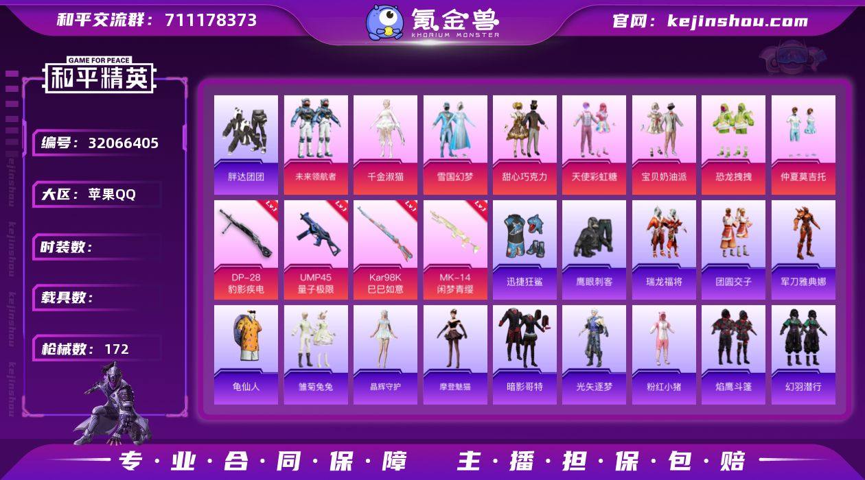 YZJ11036-可二次-苹果Q-8粉装4特效枪16热门116套装172枪皮 50602热力值 精品公主号 79000+服饰币 1200+物资币 雪国 甜心三姐妹 千金淑猫 仲夏莫吉托 胖达 云朵鹅 雪绒豹 红眼罩 夏日倾情 缤纷果语 满级Mk14闲梦青缨 特效枪全满级 雪国精灵头盔背包一套 14印记 历史超级王牌14星 【8粉装】 雪国幻梦 宝贝奶油派 天使彩虹糖 甜心巧克力 千金淑猫 未来领航者 仲夏莫吉托 恐龙拽拽 【4特效枪】 Kar98K-巳巳如意 (5级) DP-28-豹影疾电 (3级) UMP45-量子极限 (5级) Mk14-闲梦青缨 (7级) 【16热门】 龟仙人 鹰眼刺客 迅捷狂鲨 胖达团团 暗影哥特 团圆交子 瑞龙福将 粉红小猪 漫步者 风华少年志 军刀雅典娜 弄潮海豚 AKM-奇异狩猎者 M762-奇异狩猎者 M762-瑞龙福将 S686-奇异狩猎者 【1飞行器】 繁龙极客飞行器 【3头盔】 雪国精灵头盔 甜心宝贝头盔 深海小丑鱼头盔 【2背包】 雪国精灵背包 甜心宝贝背包 营地ID:764006553