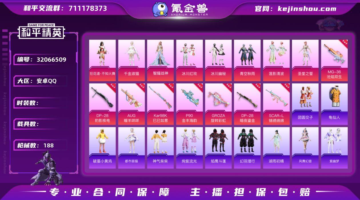 【精品号】8粉4特1载具 安卓 手Q-8粉装-4特效枪-1载具-4粉色飞行器-73298热力值-17王牌印记-176套装-224枪皮 【热门品类】:套装-胖达圆圆,角色-2B战斗服款,套装-龟仙人 【粉色套装】:粉装-炙焰红王,粉装-暗夜玫瑰,粉装-蜜语绒猫,角色-烟云彩露,角色-萨利娅,角色-樱桃泡泡,粉装-幻彩电音 【粉色枪皮等级】:P90-金丰海韵(七级),Kar98K-巳巳如意(五级),DP-28-豹影疾电(五级),平底锅-喜羊羊与灰太狼(三级) 【粉色载具】:玛莎拉蒂Quattroporte(夜幕蓝) 【粉色枪皮】:P90-金丰海韵,Kar98K-巳巳如意,DP-28-豹影疾电,平底锅-喜羊羊与灰太狼 【粉色飞行器】:梦幻火箭飞行器,拂晓神骑飞行器,彩虹独角兽飞行器,时光之誓飞行器 【粉色降落伞】:甜心宝贝降落伞,春暖花开降落伞,梦幻火箭降落伞,童趣迷兔降落伞,蓝莓炮弹降落伞,彩虹甜喵降落伞,旋转彩虹降落伞,飒粉甜心降落伞,炫光之旅降落伞,蜜语绒猫降落伞,晶梦幻蝶降落伞,樱桃泡泡降落伞,星月云朵降落伞,冷漠罗丽降落伞 【稀有套装】:套装-龟仙人,套装-绒宝小鹅,套装-巳巳如意,套装-雏菊兔兔,套装-萝兰蝴蝶,套装-糖糖葫芦,套装-青团波波,套装-棉花软糖,角色-都市丽猫,角色-摩登魅猫,套装-燕燕于飞,套装-鱼渊荷华,角色-海琴烟,套装-晶灵使者,套装-晶辉守护,角色-糖霜甜心,角色-蜜桃派对,套装-紫幽梦,套装-蓝冰羽,套装-星影赞美诗,套装-霓虹热舞,套装-彩虹兔,套装-云朵鹅,套装-雪绒豹,套装-朱霞炽焰,套装-凌霄紫焰,套装-擎苍青焰,玩偶服-喜羊羊,套装-画境星梦,套装-琴音绮想 【稀有枪皮】:AKM-彩虹符号,AKM-春暖花开,AKM-灼热熔岩,AKM-破晓战魂,AKM-霓虹街区,AKM-龙的传人,M16A4-幻世战舞者,M16A4-甜心亚梦,SCAR-L-玉兔迎春,M416-夜灯,M416-糯团青竹,M416-蓝色火焰,GROZA-异彩先驱,GROZA-影...