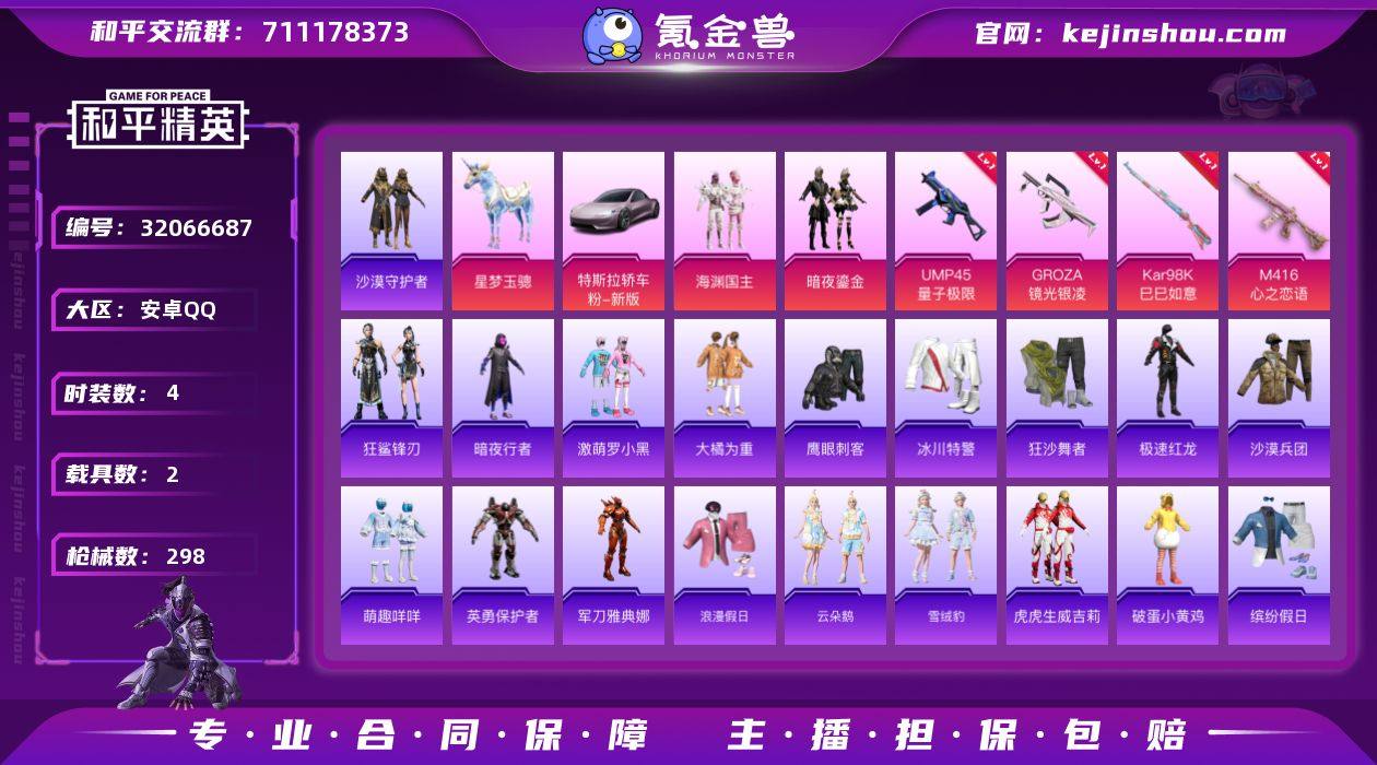 M1046442【身法号2载具-4粉装-6特效枪星梦玉骢 沙漠守护者黑丝 觉醒紫螳螂 心之恋语7级 激萌罗小黑 浪漫天命 狂沙舞者 猫包】安卓手Q-2载具-4粉装-6特效枪-204套装-298枪皮-12王牌印记-坚韧铂金Ⅱ-85680热力值【2载具】特斯拉Roadster(沁心粉) 星梦玉骢【4粉装】暗夜鎏金 角色-月影灵韵 海渊国主 角色-初号机 觉醒Ver.【6特效枪】UMP45-量子极限[5级] Kar98K-巳巳如意[5级] M416-心之恋语[7级] MG-36-沧焰双生[5级] DP-28-豹影疾电[5级] GROZA-镜光银凌[5级]【4稀有】激萌罗小黑 浪漫天命 狂沙舞者 AKM-百万伏特【11飞行器】狂鲨锋刃飞行器 太空嘟嘟飞行器 登顶巅峰飞行器 空岛之星尾迹 鸡智如我飞行器 异域银装飞行器 动力核心飞行器 马上有福飞行器 天之羽翼飞行器 炫彩糖果飞行器 焰龙焚天飞行器【1头盔】百万伏特头盔【2背包】古堡领主背包 百万伏特背包【488其它衣服和枪皮】擎苍青焰 SS16特训 特训学院 爆裂葡萄 霓虹极客 千禧之恋 SS19特训 极地朋克 青年教官 炫彩糖果 云魄琉璃 薄荷星砂 探宝勇士 灰色格斗者 SS24特训 灼焰舞者 春日漫步 暗夜契约 角色-Mark.06 午间小调 云霞荷露 风迹短诗 糖果砰砰 光之冒险 智慧之神 众神之王 都市魅力 SS17特训 SS28特训 燃烧卡路里 白熊同盟 蓝彩潮人 冰暴轰轰 猎鹰 风行保卫者 云朵鹅 坚韧舞者 热血青春 惊鸿侠骨 画境星梦 SS21特训 白月香洋装 妙红点点 雪山精英 橘黑制服 智谋强哥 福星高照 萌趣咩咩 蓝色运动 黑夜传说 纯真浪花 SS3特训 狂鲨锋刃 浪漫假日 角色-极地流光 机械征服者 凌霄紫焰 滨海厨神 海上生明月 秘语星愿 SS27特训 琴音绮想 神秘领域 蓝海鲸歌 特种颜团子 热情海星 SS14特训 SS32特训 缤纷假日 沙漠守护者 王牌教练 破蛋小黄鸡 SS35特训 SS33特训 野性战魂 战地督导 青玉碎影 角色-听雨铃兰 活力之心 神气柴柴 龟仙人 萌黄之夏