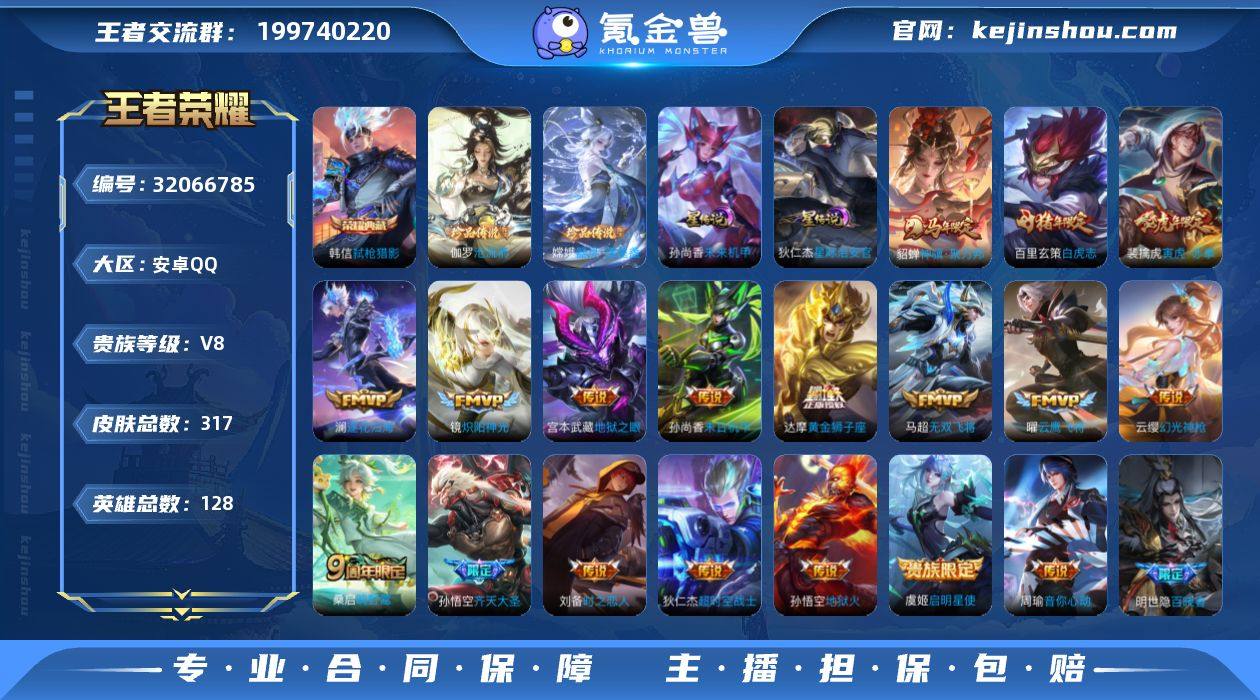 【高质量战力号·1.2万战金标玄策·准万战金标孙悟空·准万战市标百里守约·弑枪猎影·沧流箭+按键·器灵落星盏·星际治安官·神骥聚万邦+按键·齐天大圣·寅虎赤拳·周瑜音你心动·炽阳神光·白虎志+按键·时之恋人·龙胆·谪仙醉月·山海玄木吟·至尊宝·岱宗·御风骁将·可二次】YXw17823-安卓Q-128英雄-317皮肤-21王者印记-177铭文-贵族积分7w【贵族8】【1典藏·2珍品·2星传说·18传说·1天幕·9按键·幸运值191】【因赛季更新游戏段付以上号为准!】 【英雄全皮】:孙权全皮,敖隐全皮,戈娅全皮,影全皮 【荣耀典藏】:韩信弑枪猎影 【珍品传说】:伽罗沧流箭,嫦娥器灵落星盏 【星元皮肤】:狄仁杰星际治安官,孙尚香未来机甲 【天幕】:共赏芳华天幕 【内测皮肤】:孙尚香蔷薇恋人,高渐离玩趣恶龙,狂铁特工战影 【传说皮肤】:貂蝉神骥聚万邦,云缨幻光神枪,桑启鸣野蒿,澜逐花归海,孙悟空齐天大圣,马超无双飞将,裴擒虎寅虎赤拳,周瑜音你心动,镜炽阳神光,虞姬启明星使,曜云鹰飞将,刘备时之恋人,达摩黄金狮子座,百里玄策白虎志,孙尚香末日机甲,宫本武藏地狱之眼,孙悟空地狱火,狄仁杰超时空战士 【限定皮肤】:姜子牙天穹之誓,李白谪仙醉月,狄仁杰阴阳师,赵云皇家上将,赵云龙胆,墨子神迹守卫,孙尚香蔷薇恋人,庄周高山流水,高渐离死亡摇滚,高渐离玩趣恶龙,白起夜都怪侠,芈月幻夜卜梦,吕布御风骁将,元歌云间偶戏,元歌无心,典韦岱宗,马可波罗山海玄木吟,狄仁杰魔术师,狄仁杰万华元夜,达摩星际陆战队,达摩沙漠行僧,项羽海滩派对,老夫子醍醐杖,老夫子航海奇遇记,程咬金演武夺筹,韩信傲雪梅枪,王昭君凤凰于飞,兰陵王金庭之子,亚瑟潮玩骑士王,孙悟空至尊宝,孙悟空孙行者,孙悟空齐天大圣,后羿圣弓游侠,李元芳云中旅人,虞姬启明星使,钟馗驱傩正仪,杨玉环遇见飞天,干将莫邪真爱魔法,雅典...