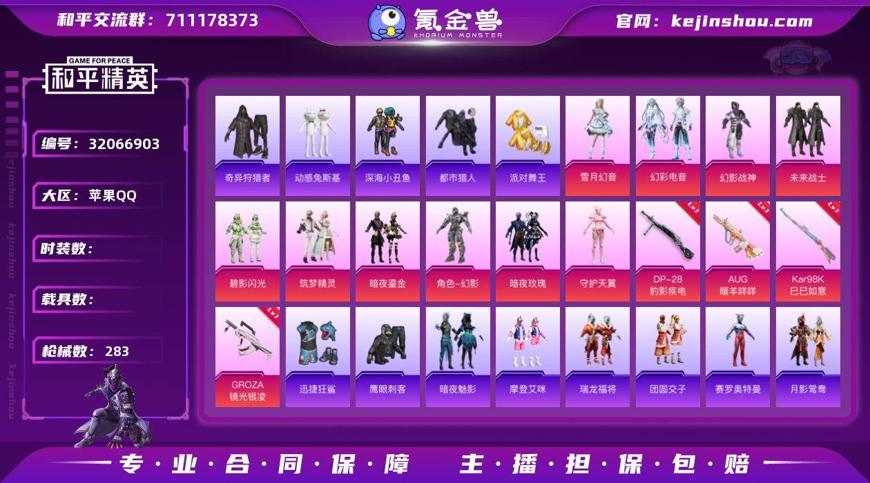 YZJ12403 可二次 苹果Q-5稀有9粉装5特效枪18热门205套装283枪皮 90180热力值 精品身法小号 200多天精英特权卡 幻影战神 都市 金鞋 深海小丑鱼 奇异狩猎者 鲨鱼服 狂沙舞者 雪月幻音 幻彩电音 未来战士 动感兔斯基 满级AUG暖羊 17印记 历史超级王牌11星 【5稀有】 奇异狩猎者 AKM-缤纷海域 都市猎人 派对舞王 派对舞王(金靴子) 【9粉装】 雪月幻音 守护天翼 幻影战神 幻彩电音 筑梦精灵 未来战士 暗夜鎏金 暗夜玫瑰 碧影闪光 【5特效枪】 Kar98K-巳巳如意 (5级) DP-28-豹影疾电 (5级) AUG-暖羊咩咩 (5级) GROZA-镜光银凌 (5级) 汤姆逊-热量炸弹 (5级) 【18热门】 龟仙人 雪山精英 动感兔斯基 鹰眼刺客 迅捷狂鲨 深海小丑鱼 赛罗奥特曼 团圆交子 瑞龙福将 纯白誓言 忍者信条 狂沙舞者 漫步者 破蛋小黄鸡 极速红龙 英勇保护者 弄潮海豚 M762-瑞龙福将 【4飞行器】 齐天大圣飞行器 炎氏战神飞行翼 闪光银龙飞行器 天之羽翼飞行器 【1头盔】 幻影战神头盔 【2背包】 梦幻火箭背包 幻影战神背包 营地ID:767395184
