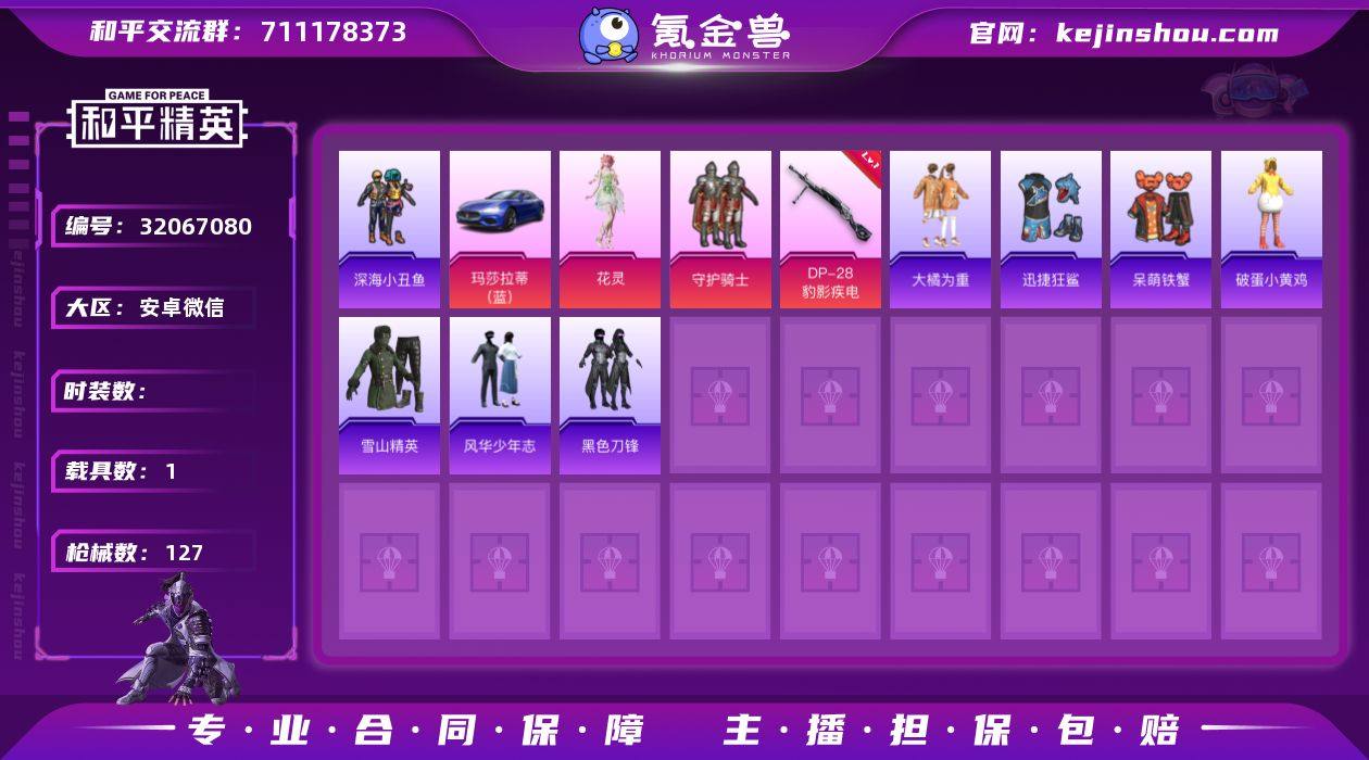 【特价出售/店主推荐】苹果 微信-3粉装-3特效枪-1载具-2粉色飞行器-5·3w热力值-10王牌印记-149套装-170枪皮 【热门品类】:套装-深海小丑鱼,角色-忠猛周仓,套装-龟仙人,角色-Mark.06,大砍刀-青龙偃月刀 【粉色套装】:角色-圣堂之誓,粉装-星穹咏叹调 【粉色枪皮等级】:AKS-74U-森灵之息(五级),Kar98K-巳巳如意(五级),DP-28-豹影疾电(五级) 【粉色载具】:保时捷918 Spyder(沉静蓝) 【粉色枪皮】:AKS-74U-森灵之息,Kar98K-巳巳如意,DP-28-豹影疾电 【粉色飞行器】:炫彩糖果飞行器,夜幕颂歌飞行器 【粉色降落伞】:绝对恒星降落伞,百万伏特降落伞,第五大道降落伞,未来歌姬降落伞,超新星降落伞,圣堂之誓降落伞,蜜语绒猫降落伞,忍者神龟降落伞,千金淑猫降落伞,喜羊羊与灰太狼降落伞,炫彩糖果降落伞 【稀有套装】:套装-龟仙人,套装-绒宝小鹅,套装-巳巳如意,套装-小鸟芋圆,套装-炫彩糖果,套装-雏菊兔兔,套装-萝兰蝴蝶,套装-小熊娃娃,套装-燕燕于飞,套装-鱼渊荷华,角色-海琴烟,套装-粉恋花,套装-紫幽梦,套装-蓝冰羽,玩偶服-懒羊羊 【稀有枪皮】:AUG-冰晶雪宝,AKM-锦绣火鲤,AKM-龙的传人,M16A4-红色方程式,M16A4-蓝色火焰,SCAR-L-夜灯,SCAR-L-炫彩节奏,SCAR-L-红色方程式,M416-糯团青竹,M416-红色方程式,M416-蓝色火焰,GROZA-懵萌河马,AUG-耀粉歌者,QBZ-原初圣火,M762-牛气冲天,M762-镭射皇者,M762-登顶巅峰,G36C-懵萌河马,G36C-星穹咏叹调,AC-VAL-快闪甜心,AC-VAL-闲梦青缨,蜜獾-天降萌叽,UZI-啾咪啾咪,UZI-天降萌叽,UZI-红色方程式,UZI-幻影飞狐,UMP45-繁龙极客,UMP45-炫光之旅,UMP45-生命誓言,UMP45-蓝色火焰,Vector-焰鹰斗篷,汤姆逊-天降萌叽,汤姆逊-耀粉歌者,AKS-74U-鬼刀,P90-快闪甜心,P90-巳巳如意,Kar98K-彩虹符号,Kar98K-红色方...