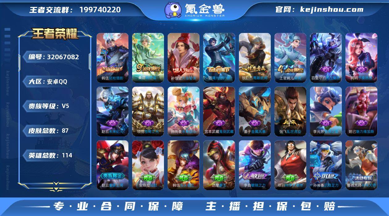 YZJ13738 可二次 安卓Q-V5小打野号 弑枪猎影 大圣娶妻 守护者-87皮肤1典藏1传说 【典藏】 弑枪猎影 【传说】 鸣野蒿 【热门】大圣娶亲 梁祝 苍穹之光 原初探秘者 金属风暴 特工魅影 曙光守护者 玩趣恶龙 逐浪之夏 节奏热浪 街头霸王 鬼剑武藏 烛龙 重明 穷奇 御狮 御銮 朔风刀 混沌棋 疑决卦 醍醐杖 万华元夜 演武夺筹 驱傩正仪 未来纪元赵云 如懿 拳王 沙漠行僧 霸王丸 敏锐之力 科学大爆炸 皇家上将 魅力维加斯 水果甜心 乱世虎臣 鹰眼统帅 114英雄-营地ID:378257603