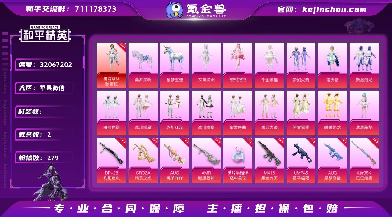 YZJ13592 可二次 苹果V-1红装2载具16粉装18特效枪5热门【极品公主衣柜女号 地铁满天赋 双字ID:兮紓 满级AUG星梦奇缘 欧若拉 (4级) 火箭 樱桃泡泡 荧海星豚 淑猫 洛天依 奶龙 女娲 第五大道 鸢尾晶梦 迎夏光舞 晶梦灵驹/独角兽 等等各种小群子穿搭 】168套装279枪皮 102660热力值 14印记 历史超级王牌20星 【1红装】 镜域双华-欧若拉 (4级) 【2载具】 晶梦灵驹 星梦玉骢 【16粉装】 梦幻火箭 女娲灵识 暖暖奶龙 千金淑猫 洛天依 荧海星豚 樱桃泡泡 闲梦青缨 鸢尾晶梦 挚爱序曲 第五大道 新星烈龙 冰川幽秘 冰川粉黛 冰川红玫 海盐物语 【18特效枪】 SCAR-L-锦绣绵绵 (5级) M416-心之恋语 (7级) M416-墨龙九天 (3级) M416-电玩时刻 (5级) AKM-绿萝繁花 (5级) Kar98K-巳巳如意 (5级) DP-28-豹影疾电 (5级) AUG-暖羊咩咩 (5级) AUG-星梦奇缘 (9级) UMP45-量子极限 (5级) Mk14-甜梦熊击 (5级) AMR-智耀战神 (4级) M24-镜域双华 (3级) GROZA-镜光银凌 (5级) GROZA-精灵之光 (3级) M249-绝对恒星 (1级) MG3-洛神天依 (7级) 破片手榴弹-瓶中星球 (6级) 【5热门】 Mark.06 龟仙人 晶辉守护 奶芙汪汪 破蛋小黄鸡 【6飞行器】 伏魔团飞行器 龙翔九天飞行器 相思残雪飞行器 幻海精灵飞行器 深渊漩涡飞行器 绝色倾城飞行器 营地ID:753136054