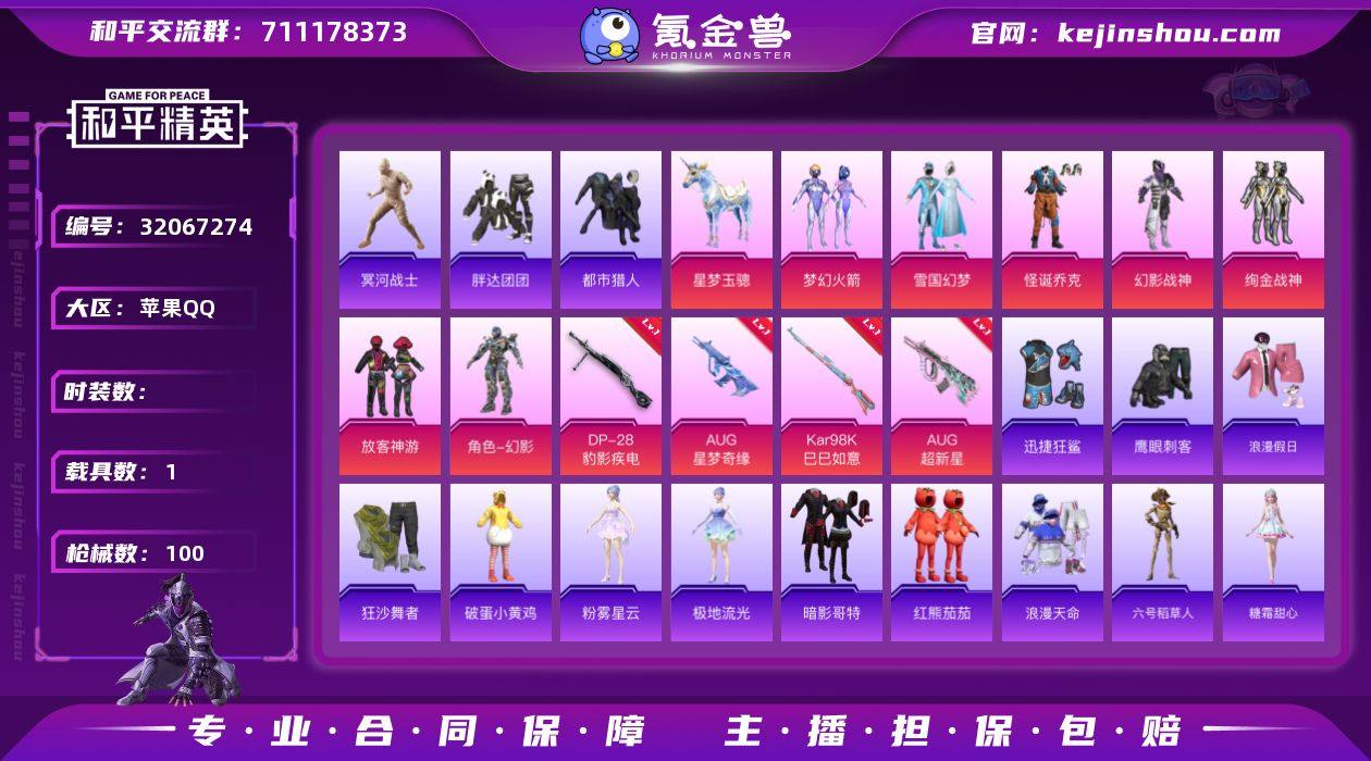 YZJ14234-可二次 苹果Q-不可转区【极品大手子主播同款身法穿搭!!!特权卡三百天 地铁满天赋 3钻苏尔南 满级星梦奇缘AUG!冰雪公主 小丑[怪诞] 木乃伊 都市 权威小番茄 新火箭少女 绚金战神 LED发光眼罩 六号稻草人 阳光菠萝 青蛙服 团团 红眼罩 浪漫天命 有改名卡】4稀有1载具6粉装5特效枪11热门91套装100枪皮 32885热力值 2印记 历史绝世王牌14星 【4稀有】 木乃伊 AKM-缤纷海域 都市猎人 浪漫天命 【1载具】 星梦玉骢 【6粉装】 梦幻火箭 雪国幻梦 怪诞乔克 幻影战神 放客神游 绚金战神 【5特效枪】 AKS-74U-森灵之息 (5级) Kar98K-巳巳如意 (5级) DP-28-豹影疾电 (5级) AUG-星梦奇缘 (9级) AUG-超新星 (1级) 【11热门】 六号稻草人 浪漫假日 红熊茄茄 鹰眼刺客 迅捷狂鲨 胖达团团 暗影哥特 忍者信条 狂沙舞者 漫步者 破蛋小黄鸡 【4头盔】 梦幻火箭头盔 雪国精灵头盔 幻影战神头盔 深海小丑鱼头盔 【4背包】 梦幻火箭背包 雪国精灵背包 甜心宝贝背包 幻影战神背包 营地ID:983488738