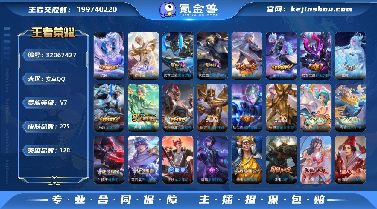 【高性价比战力号·52段打野·准1.1w金标嫦娥·万战马超·金标露娜·金标澜·无相·幻阙歌·逐花归海·霜月吟·无双飞将·凤求凰·辉光之辰·朱雀志·玄嵩·岱宗·山海玄木吟·可二次】YXw17889-安卓Q-128英雄-275皮肤-18王者印记-300铭文-贵族积分4w【贵族7】【1典藏·1无双·2星传说·10传说·1天幕·7按键】【因赛季更新游戏段付以上号为准!】 【英雄全皮】:敖隐全皮 【荣耀典藏】:貂蝉幻阙歌 【无双皮肤】:孙悟空无相 【星元皮肤】:宫本武藏幽冥之眼,狄仁杰星际治安官 【天幕】:共赏芳华天幕 【传说皮肤】:桑启鸣野蒿,澜逐花归海,露娜霜月吟,马超无双飞将,张良黄金白羊座,干将莫邪久胜战神,后羿黄金射手座,李白凤求凰,宫本武藏地狱之眼,狄仁杰超时空战士 【限定皮肤】:蔡文姬夏日便利店,虞姬夏日便利店,姜子牙天穹之誓,狄仁杰阴阳师,赵云皇家上将,孙尚香蔷薇恋人,鲁班七号狮舞东方,庄周玄嵩,庄周高山流水,芈月重明,周瑜赤莲之焰,元歌无心,夏侯惇朔风刀,曹操烛龙,典韦蓝屏警告,典韦岱宗,马可波罗山海玄木吟,狄仁杰魔术师,狄仁杰万华元夜,达摩星际陆战队,达摩沙漠行僧,项羽海滩派对,老夫子醍醐杖,程咬金演武夺筹,兰陵王驯魔猎人,兰陵王金庭之子,孙悟空大圣娶亲,牛魔御旌,后羿辉光之辰,后羿圣弓游侠,李元芳云中旅人,钟馗神迹守卫,钟馗驱傩正仪,女娲朔望之晖,干将莫邪真爱魔法,雅典娜黎明之约,太乙真人饕餮,鬼谷子原初探秘者,鬼谷子五谷丰年,苏烈千军破阵,百里玄策原初追逐者,百里守约朱雀志,弈星混沌棋,梦奇顽趣,公孙离玉兔公主,沈梦溪大漠名商,明世隐疑决卦,裴擒虎李小龙,裴擒虎擒涛扼浪,狂铁御狮,米莱狄御霄,米莱狄胡桃异想国,云中君纤云弄巧,盾山御銮,猪八戒猪悟能,上官婉儿梁祝,西施玲珑珍味,鲁班大师探海日志,桑启海盐诗旅,戈娅驭风魔法,艾琳女武神...