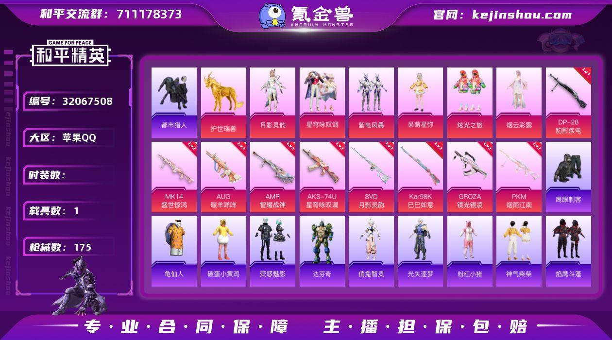 YZJ14424-可二次-苹果Q-1稀有1载具6粉装9特效枪8热门【身法号 都市 呆萌 烟云彩露 星穹咏叹调 小 六号稻草人 满级PKM江南烟雨 情公主 短笛 冰冻风暴 M4诡夜天鹅 六号稻草人头盔背包全套 粉雪蛇宝-伙伴 12张改名卡】110套装175枪皮 53045热力值 12印记 历史超级王牌15星 【1稀有】 都市猎人 【1载具】 护世瑞兽 【6粉装】 月影灵韵 烟云彩露 炫光之旅 星穹咏叹调 呆萌星弥 紫电风暴 【9特效枪】 AKS-74U-星穹咏叹调 (5级) Kar98K-巳巳如意 (5级) DP-28-豹影疾电 (3级) SVD-月影灵韵 (6级) AUG-暖羊咩咩 (4级) PKM-江南烟雨 (7级) Mk14-盛世惊鸿 (3级) AMR-智耀战神 (5级) GROZA-镜光银凌 (5级) 【8热门】 小丑鱼 龟仙人 六号稻草人 鹰眼刺客 粉红小猪 漫步者 破蛋小黄鸡 极速红龙 【1飞行器】 凤舞九天飞行器 【1头盔】 甜蜜誓约头盔 营地ID:912582978