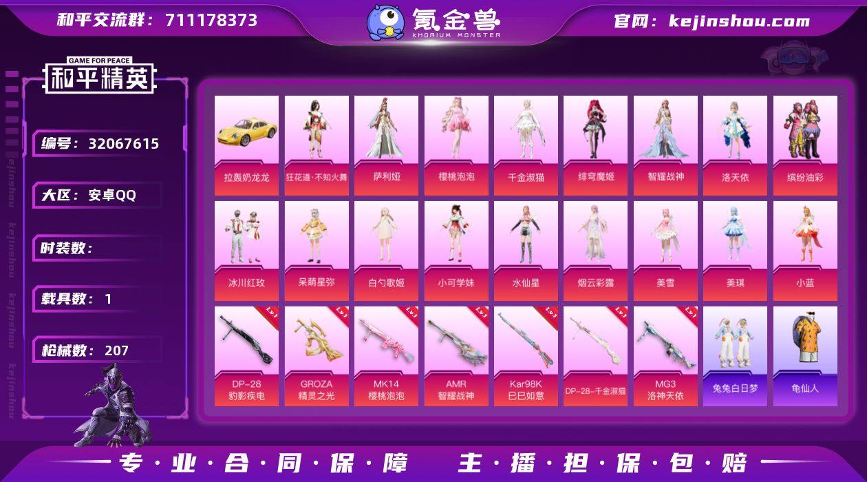 YZJ14589-可二次-安卓Q-2载具19粉装9特效枪5热门【极品公主号 多款热门粉裙优质副套 新款粉装偏多 猪妹 绝对恒星 樱桃泡泡 小蓝 美琪 美雪 不知火舞 白勺 呆萌 小可 洛天依 烟云彩露 权威小番茄 糯粉咩咩 兔兔白日梦 晶辉守护 奶油梦幻熊 灵公主 情公主 糖霜甜心 甜心蒙太奇 都市丽猫 卖崽青蛙 白光莹 冰公主 绝对恒星背包头盔全套 画境星梦背包 眠眠兔-伙伴 2张改名卡】133套装206枪皮 74672热力值 9印记 历史超级王牌17星 【2载具】 拉轰奶龙龙 萌酷奶龙僚机 【19粉装】 小蓝 美琪 美雪 狂花道·不知火舞 萨利娅 绯穹魔姬 水仙星 时空协奏·和音 千金淑猫 洛天依 烟云彩露 樱桃泡泡 白勺歌姬 呆萌星弥 小可学妹 绝对恒星 智耀战神 缤纷油彩 冰川红玫 【9特效枪】 Kar98K-巳巳如意 (5级) DP-28-千金淑猫 (7级) DP-28-豹影疾电 (5级) Mk14-樱桃泡泡 (4级) 12-雪月幻音 (5级) AMR-智耀战神 (7级) GROZA-精灵之光 (3级) M249-绝对恒星 (3级) MG3-洛神天依 (7级) 【5热门】 龟仙人 红熊茄茄 晶辉守护 糯粉咩咩 兔兔白日梦 【3飞行器】 幻海精灵飞行器 绝色倾城飞行器 镜光幻境飞行翼 营地ID:951793967