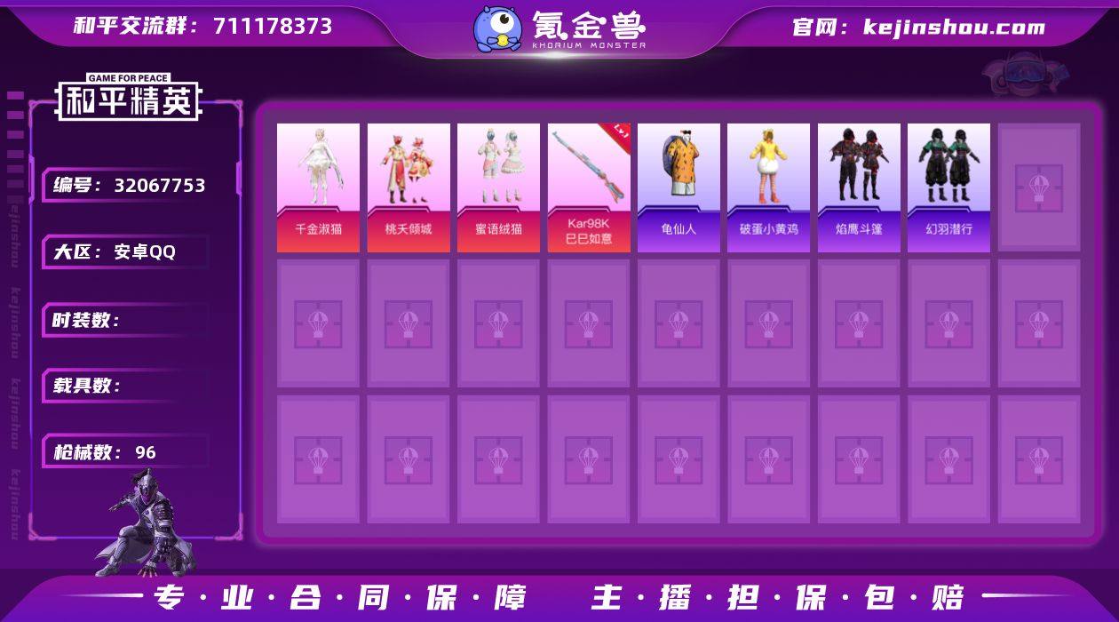 DYH18015+安卓手Q-3粉装-5特效枪-96套装-96枪皮-9王牌印记-传奇王牌7星-30633热力值【3粉装】桃夭倾城,角色-千金淑猫,蜜语绒猫【5特效枪】UMP45-萌骑冒险[2级],Kar98K-巳巳如意[4级],Mk14-福马献瑞[5级],DP-28-豹影疾电[3级],信号枪-金乌曜日[4级]【6飞行器】荒原烈焰飞行器,光之冒险尾迹,炫彩糖果飞行器,登顶巅峰飞行器,云朵驼驼飞行器,马上有福飞行器【184其它衣服和枪皮】角色-都市丽猫,白色伏地魔,SS31特训,丛林猎人,龙的传人,玉兔迎春,和煦暖阳,春光漫游,大橘大利,SS37特训,幻影武者,空岛之星,角色-糖霜甜心,蓝彩潮人,炫彩糖果,魅力单车,坚韧舞者,SS28特训,沙漠兵团,光之冒险,SS36特训,破蛋小黄鸡,破晓战魂,快闪甜心,狙击之神,焰鹰斗篷,SS23特训,龟仙人,惊鸿侠骨,角色-魂电,黄色伏地魔,海岛探路者,晨曦薄雾,街头风暴,极速红龙,飞行日记,白糯汤圆,老实芭蕉,云魄琉璃,粉日山川,猎鹰,SS29特训,雪国风尚,SS20特训,SS35特训,SS25特训,锦衣飞扬,红釉青花,轻风白浪,雨过天青,SS21特训,长空猛禽,幻世战舞者,战术大师,SS27特训,潮流炫酷,马上来财,青玉碎影,绯格组合,SS22特训,耀眼新星,军械专家,耀粉歌者,香桃花海,黑色伏地魔,星夜迷魅,麻辣教官,幻羽潜行,SS30特训,萌黄之夏,雨林探路者,龙魂突击队,香榭午后,王牌教练,都市漫游者,SS34特训,鹤鸣,竞技名士,猛禽,元素星魂,角色-摩登魅猫,霓虹街区,红色运动,海盐绵绵冰,SS26特训,田园牧歌,蝶变,柠萌假日,玲珑侠影,冰河战士,福马献瑞,SS24特训,涂山之恋,M16A4-雨过天青,S12K-夜灯,破片手榴弹-呆爆全场,M16A4-冰河战士,SLR-金丰海韵,十字弩-异瞳寒姬,MG3-惊鸿侠骨,SPAS-12-田园牧歌,M762-天降萌叽,平底锅-光之冒险,20-H-樱桃泡泡,S686-千金淑猫,GROZA-田园牧歌,MG-36-薄荷星砂,蜜獾-启元战纹,AWM-焰鹰斗篷,Mk14-