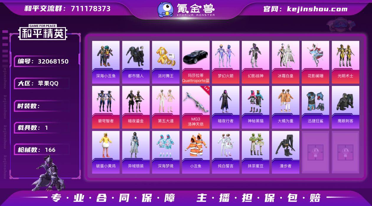 ZMH1336【2载具-8粉装-5特效枪梦幻火箭 都市猎人 金鞋 深海小丑鱼 小丑鱼】苹果手Q-2载具-8粉装-5特效枪-124套装-166枪皮-6王牌印记-荣耀皇冠Ⅰ-52928热力值【2载具】玛莎拉蒂Quattroporte(夜幕蓝)萌兔起飞【8粉装】花影阑珊,冰霜白皇,第五大道,幻影战神,碧穹智者,暗夜鎏金,梦幻火箭,光明术士【5特效枪】MG3-洛神天依[6级],ACE32-萌骑漫游[4级],AKS-74U-森灵之息[5级],Mk14-福马献瑞[5级],DP-28-豹影疾电[5级]【4稀有】派对舞王,深海小丑鱼,小丑鱼,都市猎人【12飞行器】异域银装飞行器,绝对恒星飞行器,翩跹演武飞行器,鸡智如我飞行器,粉色滑翔尾迹,狂鲨锋刃飞行器,马上有福飞行器,光之冒险尾迹,炫彩糖果飞行器,无垠阁飞行器,登顶巅峰飞行器,梦幻火箭飞行器【3头盔】深海小丑鱼头盔,九霄头盔,童趣迷兔头盔【1背包】神秘黑猫背包【273其它衣服和枪皮】朱霞炽焰,红釉青花,雨过天青,SS22特训,破蛋小黄鸡,霓虹街区,青年教官,SS8特训,萌趣咩咩,跃动心情,神秘黑猫,海岛探路者,惊鸿侠骨,SS35特训,轻风白浪,风迹短诗,黄色格斗者,绮丽涂鸦,耀眼新星,传奇侦探,SS6特训,SS25特训,凌霄紫焰,光之冒险,红色运动,燃烧卡路里,猎鹰,游猎者,街头风暴,鹰眼刺客,青翼流星,都市魅力,飞行日记,耀粉歌者,电音精灵,SS36特训,酷潮明星,幻世战舞者,竞技名士,锦衣飞扬,SS14特训,琴音绮想,SS23特训,绚烂繁星,秘语星愿,疯狂小兔子,猛禽,炫彩糖果,竞技勇士朋克,元气之梦,酸甜橘柚,黄色名流,牛气满满,王牌教练,薄荷星砂,马上有钱,擎苍青焰,狙击之神,柠萌假日,画境星梦,大橘为重,战地名士,SS7特训,雪国风尚,深海来使,SS24特训,和煦暖阳,街头潮人,天籁歌者,北国孤狼,田园牧歌,黄色运动,旭日情侣,纯白誓言,角色-紫俏灵猫,龙的传人,甜蜜告白,SS37特训,元素星魂,异域银装,魅力单车,角色-月烬之祷,丛林猎人,粉黛兰香,SS9特训,娇憨猪猪,热血青春,抹茶蜜豆,...