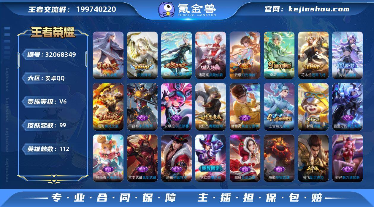 ZMW1610【v6 7传说 金标李白万战10216战力 金标赵云 凤求凰】安卓Q-99皮肤-112英雄 【传说皮肤】 鸣野蒿 乘龙·铭钟鼎 幻光神枪 冠军飞将 炽阳神光 凤求凰 武陵仙君 【史诗皮肤】 百相守梦 踏浪烽翎 辉光之辰 布丁狗之约 谧流熔炉 织梦人 涂山容容 线条小狗 漠中幻影 化蝶舞 顽趣 魅力维加斯 魔术师 鹰眼统帅 圣诞恋歌 鬼剑武藏 地狱岩魂 天才门将 圣诞狂欢 末日机甲 梁祝 水果甜心 乱世虎臣 皇家上将 黄金分割率 心灵骇客 特工魅影 【勇者皮肤】 探海日志 海盐诗旅 天穹祈灯 古海寻踪 星梦巡礼 锦麟游梦 孤猎 露花倒影 幸存者 荷鲁斯之眼 命运加冕 苍林狼骑 噬灭天穹 剑破天穹 灵野札记 虚灵犬护 雪境奇遇 玫蓝誓约 谧流熔炉 小满鸭 未来纪元 万象初新 街头霸王 教廷特使 特工战影 醍醐杖 汉昭烈帝 乓乓大师 黑桃队长 红桃皇后 疑决卦 坚韧之力 沉稳之力 东方不败 朔风刀 海滩派对 死亡骑士 混沌棋 忍·炎影 花好人间 驱傩正仪 海滩丽影 大漠名商 西部大镖客 潮玩探月行 爱心护理 玩偶对对碰 大发明家 拳王 沙漠行僧 阴阳师 黄金武士 圆桌骑士 胡桃夹子 营地ID:1805731031
