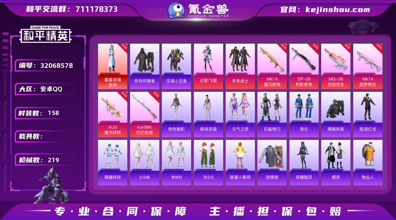 M1046692【1神装-3粉装-6特效枪 敖丙[2级]奇异狩猎者 深海小丑鱼 AUG-暖羊咩咩[5级]】安卓手Q-1神装-3粉装-6特效枪-158套装-219枪皮-11王牌印记-坚韧铂金Ⅳ-62503热力值【1神装】魔童闹海-敖丙[2级]【3粉装】角色-守护天翼 幻影飞狐 未来战士【6特效枪】DP-28-豹影疾电[5级] MG-36-沧焰双生[5级] AUG-暖羊咩咩[5级] Kar98K-巳巳如意[5级] Mk14-福马献瑞[5级] Mk14-甜梦熊击[5级]【3稀有】奇异狩猎者 深海小丑鱼 M24-奇异狩猎者【8飞行器】炫彩糖果飞行器 异域银装飞行器 鸡智如我飞行器 沙丘之主天马 破刃行动尾迹 顶峰精英尾迹 马上有福飞行器 火焰蝠人飞行服【2头盔】深海小丑鱼头盔 幻影战神头盔【1背包】幻影战神背包【364其它衣服和枪皮】元气之梦 秘语星愿 香桃花海 甜蜜旋律 炫彩糖果 深蓝色名流 荣耀 云朵鹅 SS31特训 萝兰蝴蝶 紫幽梦 蓝彩潮人 雪绒豹 龟仙人 焰鹰斗篷 冷焰舞者 星梦畅游 白糯汤圆 午间小调 极速红龙 粉恋花 完美偶像 幻世战舞者 竞技达人朋克 萌趣咩咩 朱霞炽焰 长空猛禽 冰河战士 黄色伏地魔 吉莉礼服 游乐 SS30特训 人气偶像 SS32特训 彩虹兔 SS22特训 水银刺客 绮丽涂鸦 极地朋克 春日漫步 精神漫游 顶瓜瓜 街头风暴 恋语绒绒 大橘大利 蝶变 潮流炫酷 滨海厨神 天籁歌者 漫游都市 黑色伏地魔 特训学院 福星高照 风暴特警 星渊小夜曲 空岛之星 SS34特训 SS26特训 夏日倾情 SS27特训 幻羽潜行 角色-蜜桃派对 擎苍青焰 湖蓝色名流 SS20特训 蓝冰羽 角色-敖闰 鹰眼刺客 破晓战魂 小熊娃娃 怒火燎原 都市漫游者 破蛋小黄鸡 福马献瑞 深海梦境 青年教官 幻世保卫者 凌霄紫焰 角色-海琴烟 北国孤狼 纯真浪花 SS28特训 都市魅力 黄色运动 海盐绵绵冰 白色伏地魔 黄色名流 玲珑侠影 星途旅人 鱼渊荷华 电音精灵 森林游猎者 雨过天青 漫步者 猛禽 快闪甜心 沙漠毒蛇 SS37特训 角色-白光莹 春光