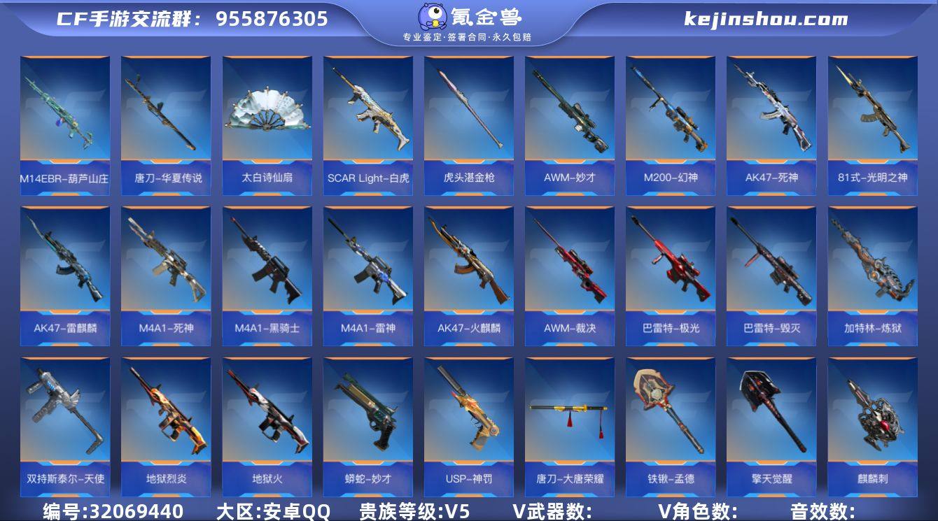 MLY756145 V5-160v-5+4王者丨王者之魂,王者之心,王者之誉,王者之尊,王者之兽丨M200幻神,81光明之神,AWM裁决,AWM妙才,MK47鼓龙,屠龙,双持斯泰尔-天使,马来剑毁灭,巴雷特极光,修罗,M4雷神,地狱烈炎,巴雷特毁灭,龙啸,M4黑骑士,M4死神,AK无影,麒麟刺,地狱火,虎头湛金枪,双管猎枪威侯,AK雷麒麟,AK火麒麟,铁锹孟德,USP神罚,QBZ金色蔷薇,蟒蛇-妙才,98K黑骑士,大黄蜂,唐刀-大唐荣耀,加特林-炼狱,唐刀-华夏传说,Scar白虎,擎天觉醒,太白诗仙扇,USP太白诗仙,AK死神,方天画戟,M14EBR-葫芦山庄,风之子,COP绚樱,黄金风之子丨关小雨,葵,零水下丽影,宋雨琦,木兰