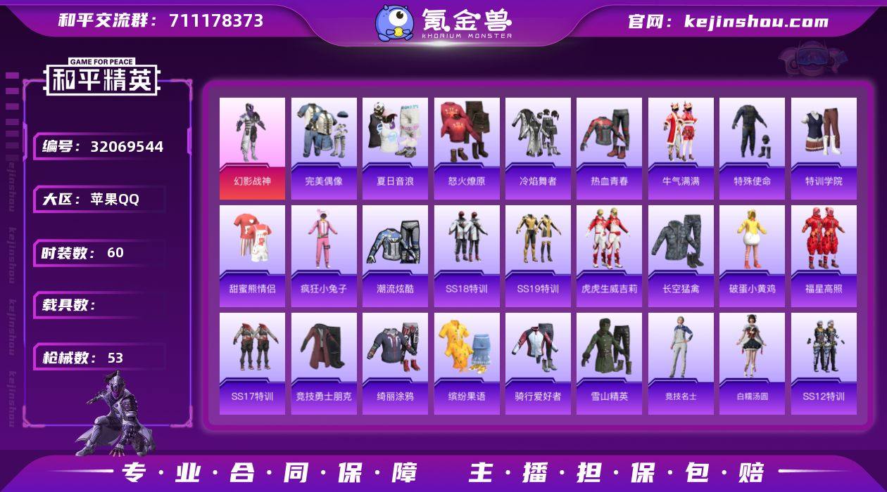 鸡王者连体号-幻影战神1粉装1特效枪-果Q王者126皮肤3传说 逐花归海 久胜战神 地狱之眼 真我赫兹百里】126皮肤3传说29史诗29限定(吃鸡王者)一体号 苹果Q-1粉装1特效枪3热门46套装53枪皮 14096热力值 1印记 历史超级王牌2星 【1粉装】 幻影战神 【1特效枪】 Mk14-福马献瑞 (5级) 【3热门】马上有钱 雨过天青 青翼流星 雪山精英 漫步者 破蛋小黄鸡 【126皮肤3传说29史诗29限定】苹果Q-V4- 【传说】 逐花归海 久胜战神 地狱之眼 【热门】冰冠公主 原初追逐者 梁祝 黄忠百相守梦 真我赫兹百里 原初探秘者 水晶猎龙者 地狱岩魂 特工魅影 黄金分割率 妄想食味 功夫厨神 幽灵船长 星夜王子 赏金猎手 节奏热浪 街头霸王 鬼剑武藏 冰雪圆舞曲 花好人间 御銮 朔风刀 混沌棋 疑决卦 醍醐杖 万华元夜 克喵 未来纪元赵云 千军破阵 沙漠行僧 金庭之子 大漠名商 云中旅人 海盐诗旅 擒涛扼浪 魅力维加斯 水果甜心 古海寻踪 天穹祈灯 高山流水 无心 星界游侠 江河有灵 荣光圣徽 纤云弄巧 电玩高手 五谷丰年 乱世虎臣 鹰眼统帅 124英雄苹果Q区-1粉装-1特效枪-14096热力值-1王牌印记-46套装-53枪皮【优质套装】: 幻影战神【稀有武器皮肤】: 蜜獾-乌木金纹 M416-红色方程式 M416-蓝色火焰 AKM-夜灯 AKM-生命誓言 AKM-破晓战魂 AKM-虎虎生威 SCAR-L-暗夜玫瑰 AUG-乌木金纹 AUG-耀粉歌者 AUG-天降萌叽 QBZ-彩虹符号 M762-牛气冲天 G36C-乌木金纹 Kar98K-乌木金纹 Kar98K-红色方程式 M24-乌木金纹 M24-影袭 AWM-乌木金纹 VSS-乌木金纹 Mini14-炫彩节奏 UZI-影袭 UZI-啾咪啾咪 UMP45-蓝色火焰 UMP45-生命誓言 Vector-彩虹符号 汤姆逊-幻影战神 汤姆逊-乌木金纹 野牛-乌木金纹 野牛-夜灯 S12K-幻影战神 M249-乌木金纹 平底锅-飞行日记 AUG-异域银装【其他套装】