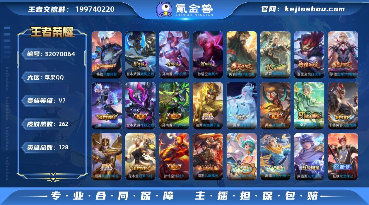 AHC71576,3星元,苹果Q-V7-最强王者段位-128英雄-262皮肤-1典藏皮肤-15传说-67史诗 【英雄全皮】:敖隐全皮,影全皮 【荣耀典藏】:韩信弑枪猎影 【传说皮肤】:关羽神骥镇沧海,后羿神树通天,桑启鸣野蒿,典韦战鼓燎原,澜逐花归海,露娜霜月吟,李信山海炽霜斩,干将莫邪久胜战神,达摩黄金狮子座,百里玄策白虎志,花木兰冠军飞将,后羿黄金射手座,孙尚香末日机甲,宫本武藏地狱之眼,孙悟空地狱火 【限定皮肤】:姜子牙天穹之誓,狄仁杰阴阳师,赵云皇家上将,妲己时之彼端,孙尚香蔷薇恋人,鲁班七号狮舞东方,阿轲迷踪丽影,孙膑天狼运算者,吕布御风骁将,元歌云间偶戏,元歌无心,夏侯惇朔风刀,典韦蓝屏警告,狄仁杰魔术师,狄仁杰万华元夜,达摩星际陆战队,项羽海滩派对,老夫子醍醐杖,关羽冰锋战神,程咬金演武夺筹,刘邦夺宝奇兵,韩信逐梦之影,韩信飞衡,花木兰默契交锋,亚瑟潮玩骑士王,孙悟空至尊宝,牛魔御旌,牛魔奔雷神使,李元芳银河之约,钟馗神迹守卫,钟馗驱傩正仪,杨玉环遇见飞天,女娲朔望之晖,鬼谷子原初探秘者,百里玄策白虎志,百里玄策原初追逐者,弈星混沌棋,梦奇顽趣,沈梦溪星空之诺,明世隐疑决卦,裴擒虎李小龙,狂铁御狮,米莱狄御霄,米莱狄胡桃异想国,云中君纤云弄巧,李信山海炽霜斩,盾山御銮,沈梦溪龙舞盛年,刘邦剑破天穹,镜青焰无极,项羽苍威无极,周瑜熔金海岸 【年限皮肤】:百里玄策白虎志,韩信飞衡,吕布御风骁将,牛魔奔雷神使,李信山海炽霜斩 【赛季限定】:狂铁御狮,米莱狄御霄,牛魔御旌,盾山御銮,夏侯惇朔风刀,弈星混沌棋,明世隐疑决卦,老夫子醍醐杖,鬼谷子原初探秘者,狄仁杰万华元夜,程咬金演武夺筹,钟馗驱傩正仪,刘邦剑破天穹,姜子牙天穹之誓,东皇太一噬灭天穹,太乙真人谧流熔炉,钟馗虚灵犬护,甄姬逆浪荇歌,亚瑟荣光之誓,...
