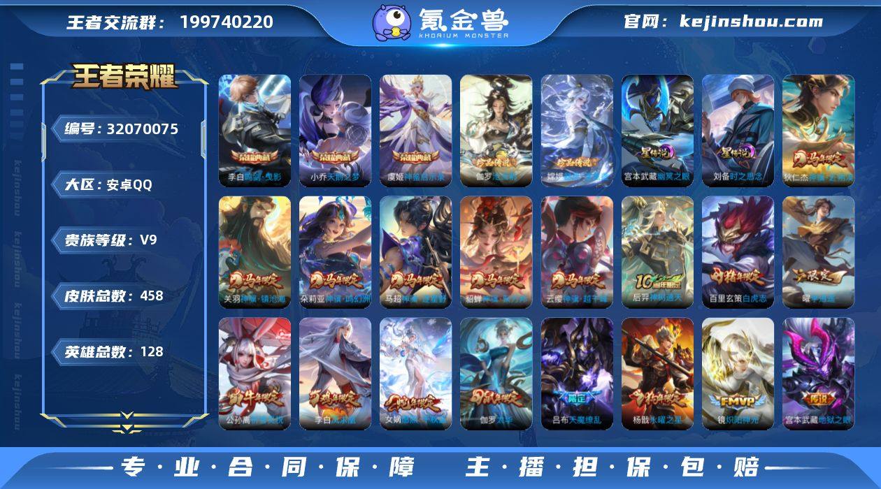 贵族等级:V9 典藏皮肤数:3 珍品无双皮肤数:0 无双皮肤数:0 珍品传说皮肤数:2 传说皮肤数:37 史诗皮肤数:148 皮肤数:458 英雄数:128 段位:传奇王者 卖家说:不能改二次 包人脸