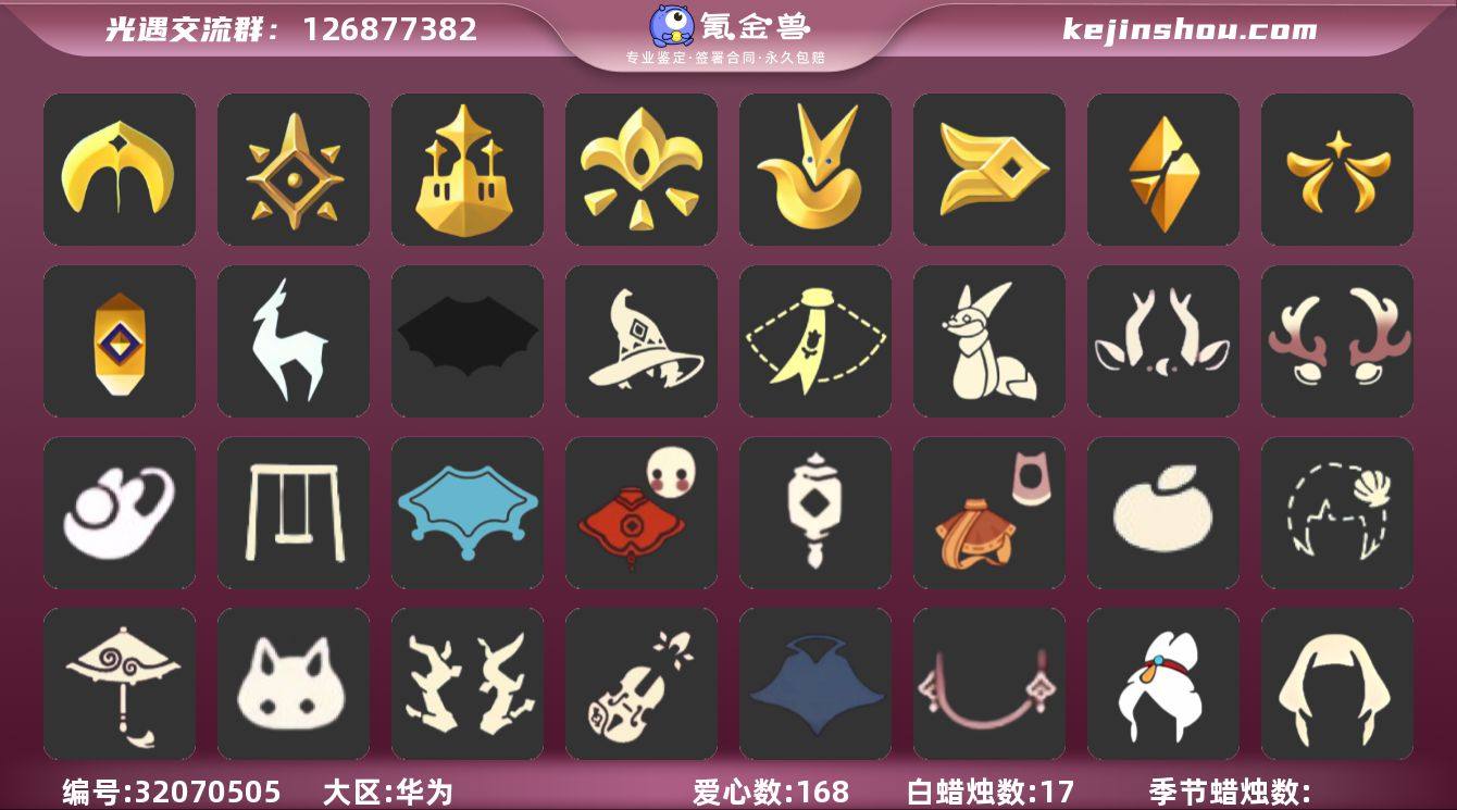账号类型: 手机账号 季节已毕业: 圣岛季,预言季,梦想季,小王子季,风行季,破晓季,欧若拉季,集结季,追忆季,九色鹿季 完成地图: 晨岛,云野,雨林,霞谷,暮土,禁阁 珍稀物品: 鳐鲲斗篷,阿努比斯(狗头),透明蝶翼斗,玫瑰花 礼包: 蝙蝠套,巫师,围巾,小狐狸,九色鹿角,鹿角,兔子鞋,秋千,瑞雪,福娃,灯笼,风之旅人,橘子,贝壳,红伞,兔子,枯角,小提琴,伯爵斗篷,新年耳钉 裤子: 武士裤,背带裤,搓澡巾,击剑裤,王子服,蓝绿裤,飞天裤 面具: 阿努比斯,凤凰面具,贴花面具 面饰: 红耳机,黑框眼镜 项链: 围巾 发型: 归巢毕业发型,若笠,虚荣,小王子发型,留辫蘑菇头,飞天盘发 头饰: 行军锅头盔,羽毛发饰,平顶帽 斗篷: 蟑螂斗,绿芽,遥鲲斗篷,黄色连帽披风,冥龙斗篷 配饰: 雨伞,高音钢琴,玫瑰花,圆鼓,蓝色手碟,鲲灯 亮点: 【优质装备】:预言季,阿努比斯(狗头),武士裤,圣岛季,梦想季,小王子季(王子季),风行季,破晓季,鳐鲲斗篷,透明蝶翼斗,欧若拉季(欧若拉),归巢毕业发型(五塑彩羽发),行军锅头盔(六边锅帽子)(双耳锅帽子),羽毛发饰(多羽发饰),高音钢琴(白色高脚钢琴),集结季,玫瑰花,追忆季,九色鹿(九色鹿季),王子服(小王子套装),蓝绿裤(高领舞服),飞天裤(柔缎花边连)(九色鹿丝带裤),蟑螂斗(凤凰斗篷),围巾(肩带),红耳机,晨岛,云野,雨林,霞谷,墓土(暮土),禁阁,若笠(箬笠),凤凰面具,贴花面具(丛林黑面具),黑框眼镜(粗框眼镜),小王子发型,留辫蘑菇头,遥鲲斗篷(双翼遥鲲斗),黄色连帽披风(连帽斗篷)(斜边队长斗篷),冥龙斗篷,圆鼓(手拍大鼓),蓝色手碟(毕业手碟),鲲灯(追忆之书),飞天盘发(九色鹿丸子头),蝙蝠套(蝙蝠斗篷)(南瓜头),福娃(福娃礼包)(春之日礼包)(铜钱斗),风之旅人(风之旅人礼包),秋千(情人秋千),小提琴(凯旋提琴),围巾(小王子斗篷)(小王子围巾),九色鹿角(神鹿祝福头饰)(神鹿祝福礼包),鹿角(圣诞鹿角),瑞雪(瑞雪斗篷)(暖冬瑞雪),灯笼(中...