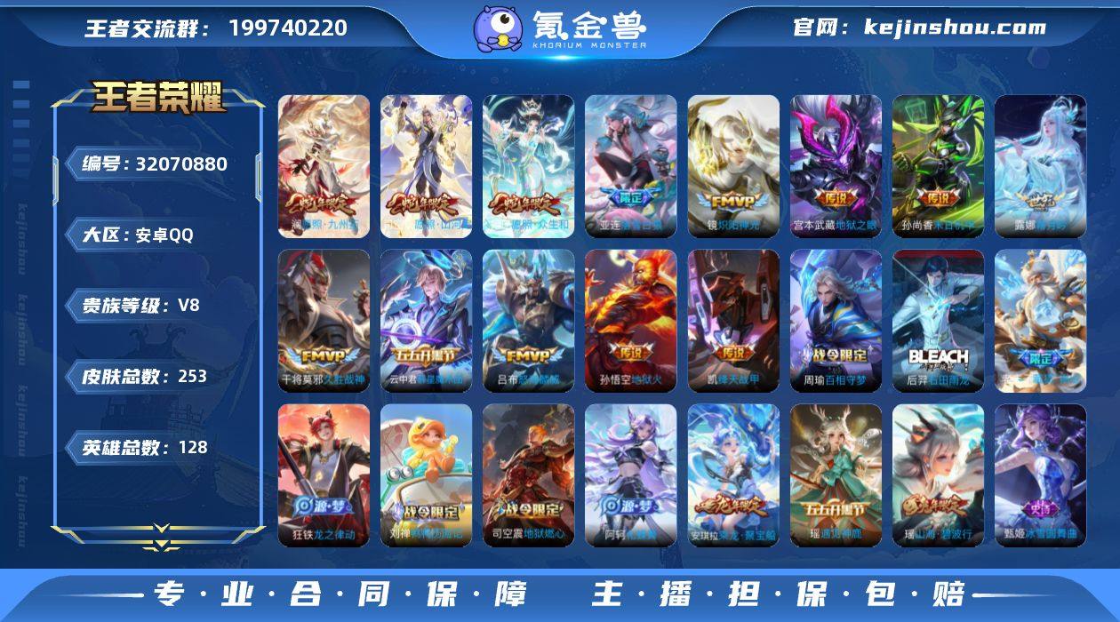128英雄-253皮肤-安卓QQ 可二次/v8/无双王者/253皮肤/打野男号/韩信.踏浪归/异界灵契 花木兰,炽阳神光 镜,霜月吟 露娜,怒海麟威 吕布,久胜战神 干将莫邪,末日机甲 孙尚香,踏浪归 韩信,绛天战甲 铠,愿照·九州拓 澜,群星魔术团 云中君,愿照·众生和 妲己,神树通天 后羿,愿照·山河定 司空震,/128英雄/0典藏/0珍品无双/1无双/1珍品传说/18传说/71史诗/9稀有英雄 【1 珍品传说】沧流箭 伽罗, 【1 无双皮肤】问心剑 李信, 【18 传说皮肤】启明星使 虞姬,地狱火 孙悟空,落雪白狼 亚连,神骥·逐星野 马超,地狱之眼 宫本武藏,异界灵契 花木兰,炽阳神光 镜,霜月吟 露娜,怒海麟威 吕布,久胜战神 干将莫邪,末日机甲 孙尚香,踏浪归 韩信,绛天战甲 铠,愿照·九州拓 澜,群星魔术团 云中君,愿照·众生和 妲己,神树通天 后羿,愿照·山河定 司空震, 【71 史诗皮肤】蔬乡物语 鲁班七号,紫霞仙子 露娜,暗渊魔法 司马懿,糖绘人间 亚连,五谷丰年 鬼谷子,巫礼祀神 少司缘,鬼剑武藏 宫本武藏,百相守梦 黄忠,星夜王子 白起,地狱燃心 司空震,线条小狗 周瑜,百晓客 明世隐,摇滚巨星 嬴政,魅力维加斯 妲己,黄金分割率 诸葛亮,偶像歌手 王昭君,荣光圣徽 蒙恬,女仆咖啡 妲己,白蛇 大乔,九幽镇关 项羽,遇见神鹿 瑶,舞动绿茵 蔡文姬,鹰眼统帅 狄仁杰,光弋星穹 莱西奥,纤云弄巧 云中君,金属风暴 墨子,特工魅影 百里守约,猫狗日记 孙策,原初追逐者 百里玄策,逐浪之夏 李元芳,未来纪元 赵云,藏狐·褐绒 老夫子,灵蛊蚀心 扁鹊,雪豹·霜爪 百里守约,石田雨龙 后羿,鸭鸭历险记 刘禅,驭风魔法 戈娅,魔术师 狄仁杰,龙之律动 狂铁,皇家上将 赵云,功夫厨神 程咬金,电玩·爆裂旋风 刘禅,水晶猎龙者 花木兰,山海·碧波行 瑶,涂山容容 公孙离,圣诞狂欢 吕布,青焰无极 镜,群星魔术团 上官婉儿,白龙吟 韩信,星界战将 牛魔,茶境仙 孙膑,蔷薇恋人 孙尚香,冰雪圆舞曲 甄姬,千年...