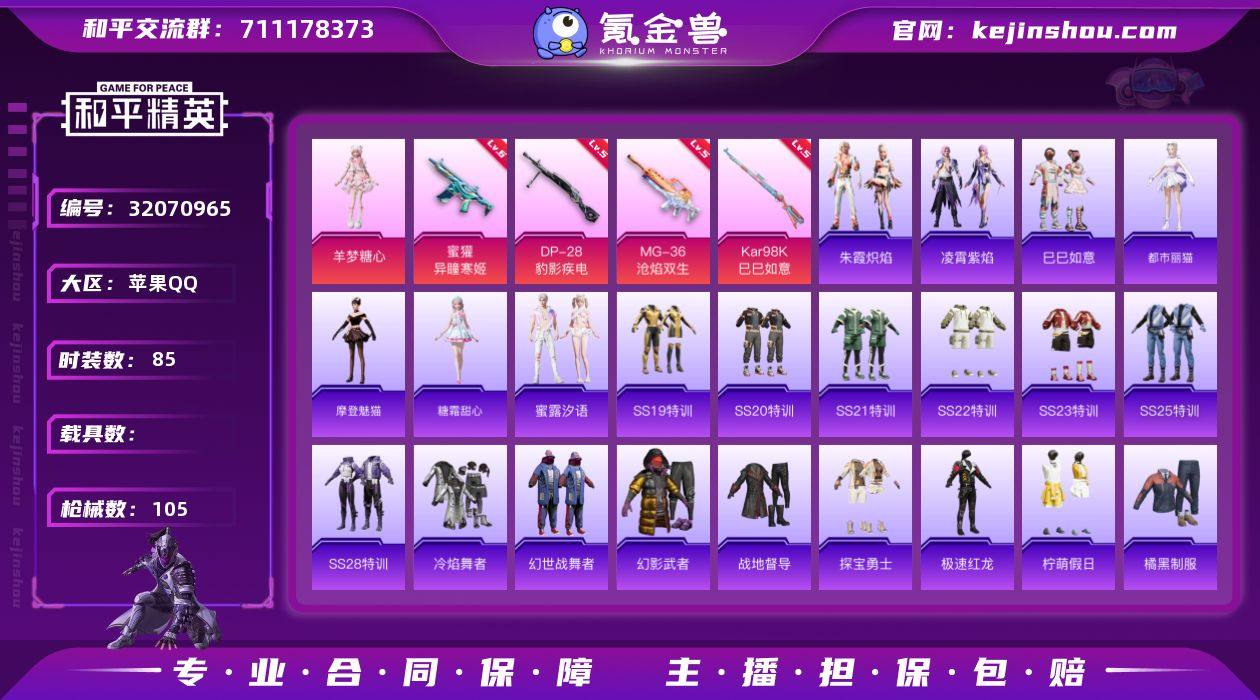 苹果 手Q-1粉装-6特效枪-0载具-2粉色飞行器-31077热力值-5王牌印记-85套装-105枪皮 【粉色套装】:角色-羊梦糖心 【粉色枪皮等级】:蜜獾-异瞳寒姬(六级),UMP45-萌骑冒险(四级),Kar98K-巳巳如意(五级),Mk14-福马献瑞(二级),DP-28-豹影疾电(五级),MG-36-沧焰双生(五级) 【粉色枪皮】:蜜獾-异瞳寒姬,UMP45-萌骑冒险,Kar98K-巳巳如意,Mk14-福马献瑞,DP-28-豹影疾电,MG-36-沧焰双生 【粉色飞行器】:炫彩糖果飞行器,光之祷告飞行器 【粉色降落伞】:千金淑猫降落伞,月影灵韵降落伞,樱桃泡泡降落伞,星穹咏叹调降落伞,炫彩糖果降落伞 【稀有套装】:套装-巳巳如意,套装-雪国风尚,玩偶服-小熊虫,套装-暖暖麦兜,套装-马上来财,角色-都市丽猫,角色-摩登魅猫,角色-糖霜甜心,套装-蜜露汐语,套装-朱霞炽焰,套装-凌霄紫焰,套装-雨过天青,套装-红釉青花 【稀有枪皮】:AKM-破晓战魂,AKM-龙的传人,M16A4-幻世战舞者,SCAR-L-夜灯,SCAR-L-炫彩节奏,SCAR-L-玉兔迎春,M416-糯团青竹,M416-红色方程式,GROZA-彩虹符号,AUG-天降萌叽,AUG-耀粉歌者,M762-天降萌叽,AC-VAL-天降萌叽,蜜獾-娇憨猪猪,ARX-凌霄紫焰,UZI-娇憨猪猪,UZI-月影灵韵,UMP45-蓝色火焰,汤姆逊-耀粉歌者,JS9-凌霄紫焰,P90-巳巳如意,M24-影袭,M24-炫彩节奏,SKS-炫彩节奏,Mini14-炫彩节奏,Mini14-耀粉歌者,SLR-娇憨猪猪,S686-生命誓言,S686-巳巳如意,S686-千金淑猫,S12K-玩趣呆呆,S12K-娇憨猪猪,S12K-幻世战舞者,DBS-彩虹符号,M249-破晓战魂,MG3-幻世战舞者,MG-36-凌霄紫焰,P92-凌霄紫焰,蝎式手枪-千金淑猫,平底锅-凌霄紫焰,破片手榴弹-巳巳如意 【其他套装】:套装-SS19特训,套装-SS20特训,套装-SS21特训,套装-SS22特训,套装-SS23特训,套装-SS25特训,套装-SS28特训,套装-冷焰舞者,套装-幻世...