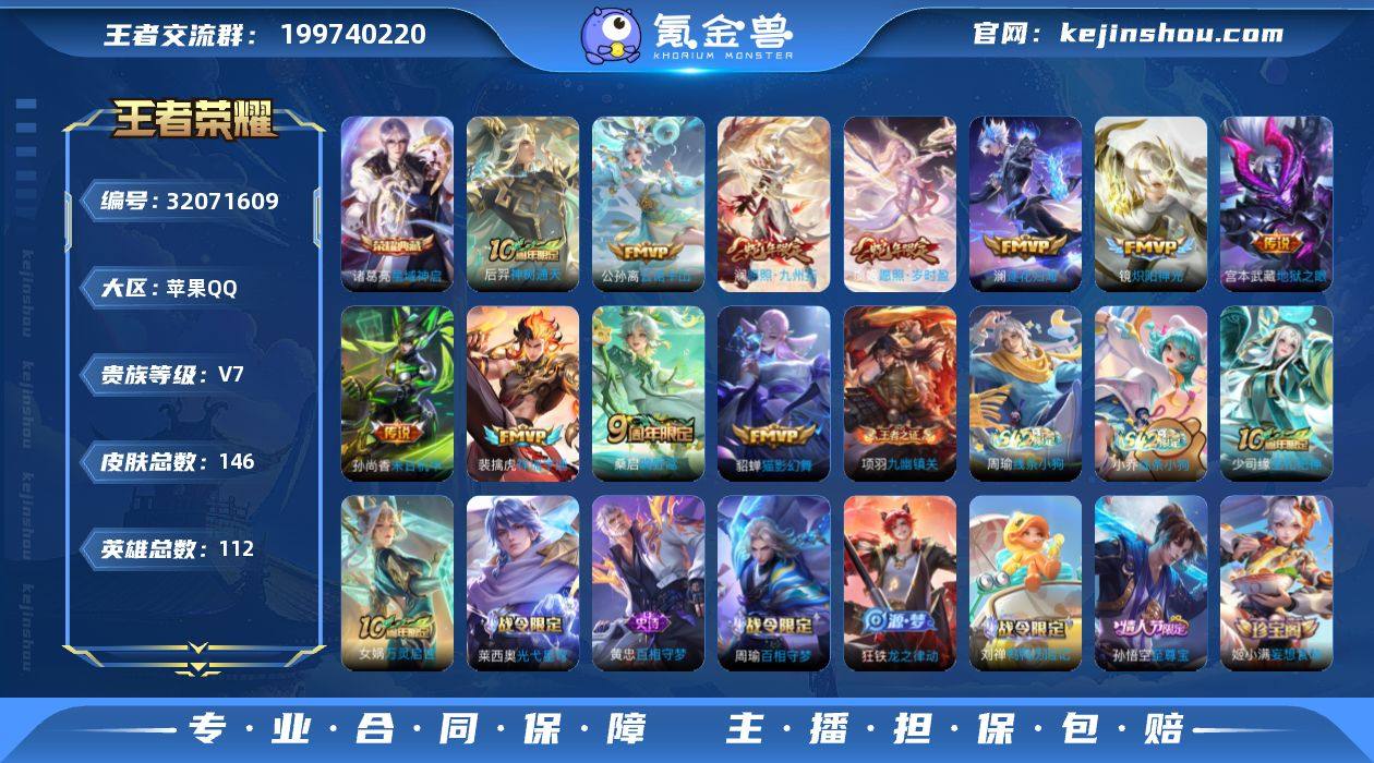 苹果Q-V7-最强王者段位-112英雄-146皮肤-1典藏皮肤-11传说-46史诗【英雄全皮】:孙权全皮【荣耀典藏】:诸葛亮星域神启【传说皮肤】:后羿神树通天,公孙离云诺千山,澜愿照九州拓,虞姬愿照岁时盈,裴擒虎祥瑞亨通,桑启鸣野蒿,澜逐花归海,镜炽阳神光,貂蝉猫影幻舞,孙尚香末日机甲,宫本武藏地狱之眼【限定皮肤】:李白谪仙醉月,狄仁杰阴阳师,赵云皇家上将,元歌无心,狄仁杰魔术师,项羽海滩派对,孙悟空至尊宝,雅典娜黎明之约,嫦娥暖冬兔眠,蒙犽狂想玩偶喵,艾琳流音漫舞,姬小满妄想食味【年限皮肤】:澜愿照九州拓,虞姬愿照岁时盈【赛季限定】:东皇太一噬灭天穹,太乙真人谧流熔炉,钟馗虚灵犬护,甄姬逆浪荇歌,亚瑟荣光之誓,雅典娜黎明之约,项羽九幽镇关【战令限定】:蒙犽狂想玩偶喵,嫦娥暖冬兔眠,艾琳流音漫舞,孙膑茶境仙,马超访茗客,刘禅鸭鸭历险记,沈梦溪鸭鸭历险记,周瑜百相守梦,孙策百相守梦,莱西奥光弋星穹,明世隐往忆晖光,周瑜线条小狗,小乔线条小狗【史诗皮肤】:周瑜线条小狗,小乔线条小狗,项羽九幽镇关,少司缘巫礼祀神,女娲万灵启世,莱西奥光弋星穹,黄忠百相守梦,周瑜百相守梦,狂铁龙之律动,刘禅鸭鸭历险记,芈月瑰影绮梦,孙膑茶境仙,李白谪仙醉月,姬小满妄想食味,刘禅电玩爆裂旋风,元歌无心,貂蝉唤灵魅影,澜赏金猎手,雅典娜黎明之约,钟馗乐园奇幻夜,杨戬天秀启明,蒙犽狂想玩偶喵,狄仁杰鹰眼统帅,大乔猫狗日记,阿轲节奏热浪,白起星夜王子,李元芳逐浪之夏,刘禅天才门将,铠曙光守护者,雅典娜冰冠公主,兰陵王暗隐猎兽者,夏侯惇乘风破浪,花木兰水晶猎龙者,孙悟空至尊宝,曹操幽灵船长,刘禅绅士熊喵,吕布圣诞狂欢,妲己女仆咖啡,妲己魅力维加斯,嬴政暗夜贵公子,孙尚香水果甜心,宫本武藏鬼剑武藏,廉颇地狱岩魂,狄仁杰魔术师,甄姬...