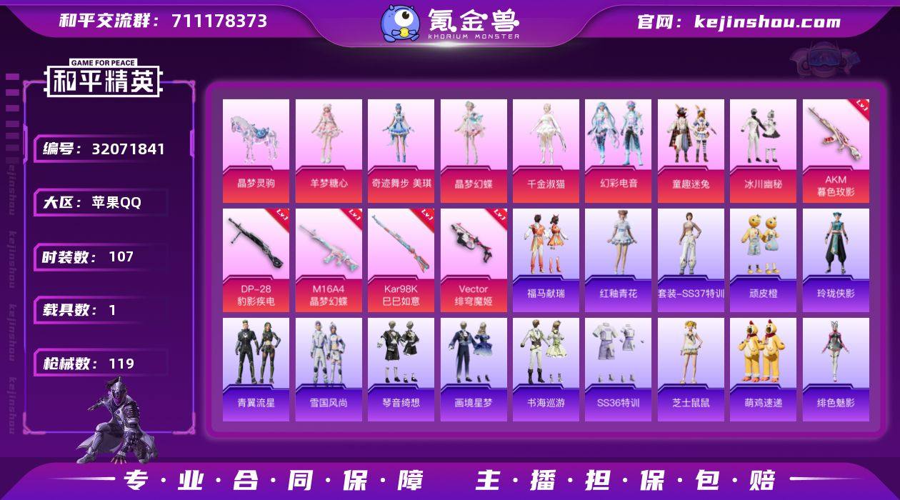 【女号小番茄10粉装7特效枪1载具 秒换绑不用等】 苹果Q区-40709热力值-107套装-119枪皮 【1载具】 晶梦灵驹【1稀有】 红熊茄茄(权威小潘茄)【10粉装】 甜梦小狐 童趣迷兔 人物-小舞·灵珑 山涧鹿灵 冰川幽秘 角色-奇迹舞步 美琪 角色-晶梦幻蝶 幻彩电音 角色-羊梦糖心 角色-千金淑猫【7特效枪】 AKM-暮色玫影(3级) Mk14-福马献瑞(5级) UMP45-萌骑冒险(2级) M16A4-晶梦幻蝶(5级) Kar98K-巳巳如意(5级) Vector-绯穹魔姬(7级) DP-28-豹影疾电(5级)【167热门】 鹰眼刺客 破蛋小黄鸡 深海小丑鱼 GROZA-林间仙鹿 AKM-缤纷海域 M249-彩虹符号 长空猛禽 特训学院 青涩时光 魅力单车 猎鹰 蓝色运动 海岛探路者 兔兔白日梦 AA12-G-雨过天青 汤姆逊-林间仙鹿 沙漠之鹰-雨过天青 红熊茄茄 MK47-林间仙鹿 折梦之诗 平底锅-画境星梦 玲珑侠影 AWM-暮色玫影 M16A4-雨过天青 顶瓜瓜 SPAS-12-福马献瑞 晶灵使者 雨过天青 MG-36-薄荷星砂 GROZA-福马献瑞 恋语绒绒 SS34特训 漫游都市 雪夜云雾 朱霞炽焰 星渊小夜曲 撬棍-冰晶雪宝 福马献瑞 GROZA-晶梦幻蝶 Win94-晶梦幻蝶 彩虹兔 SCAR-L-冷漠罗丽 凌霄紫焰 小鸟芋圆 ACE32-冰晶雪宝 听雨铃兰 擎苍青焰 青翼流星 SS31特训 SS33特训 SS32特训 迎夏光舞 极速光影 绯色魅影 雪绒豹 狂鲨锋刃 SS36特训 异域银装 MG3-折梦之诗 混沌火种 SKS-折梦之诗 JS9-凌霄紫焰 MG-36-凌霄紫焰 绒宝小鹅 马上来财 蜜獾-启元战纹 ARX-凌霄紫焰 云朵鹅 Mk47-虹云熊熊 Kar98K-星穹咏叹调 晶辉守护 云鹰凌岚 G36C-星穹咏叹调 芝士鼠鼠 P92-凌霄紫焰 S1897-精灵梦叶罗丽 顽皮玉兔 平底锅-凌霄紫焰 狙击之神 幽雨猫猫 UMP45-海盐豹豹 暖暖麦兜 荒原牛仔 M417-玩趣呆呆 Mk14-薄荷星砂 AMR-喜羊羊与灰太