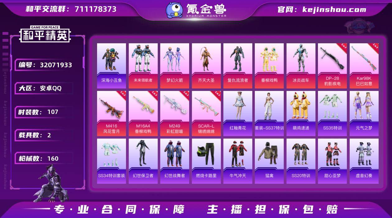 【梦幻火箭满级M4风花雪月8特效枪6粉装2载具 秒换绑不用等】 安卓Q区-49526热力值-107套装-160枪皮 【2载具】 路特斯EL蓝色 玛莎拉蒂Q蓝色【6粉装】 梦幻火箭 齐天大圣 复仇流浪者 垂柳戏鸭 冰炎战车 未来领航者【8特效枪】 M416-风花雪月(7级) Mk14-福马献瑞(4级) UMP45-萌骑冒险(4级) SCAR-L-锦绣绵绵(5级) M16A4-垂柳戏鸭(2级) M249-彩虹甜喵(6级) Kar98K-巳巳如意(5级) DP-28-豹影疾电(5级)【131热门】 破蛋小黄鸡 小丑鱼 军刀雅典娜 迪迦奥特曼 团圆交子 瑞龙福将 忍者信条 SS27特训 SS26特训 SS25特训 SCAR-L-玉兔迎春 AUG-幻影战神 Mk47-乌木金纹 SKS-糯团青竹 UZI-娇憨猪猪 UMP45-蓝色火焰 S12K-垂柳戏鸭 M249-彩虹符号 MG3-幻世战舞者 AKM-霓虹街区 GROZA-异彩先驱 长空猛禽 异彩先驱 虚音幻奏 甜心亚梦 燃烧卡路里 青涩时光 牛气冲天 霓虹街区 霓虹极客 魅力单车 蓝色运动 黄色运动 漫步者 红色运动 粉红小猪 M762-瑞龙福将 创世·幻影 AA12-G-雨过天青 沙漠之鹰-雨过天青 M16A4-雨过天青 雨过天青 GROZA-福马献瑞 恋语绒绒 SS34特训 AWM-天降萌叽 SS18特训 福马献瑞 战术弩-江南烟雨 SS16特训 SS17特训 SS19特训 SS20特训 SS21特训 萝兰蝴蝶 SS30特训 SS28特训 海盐绵绵冰 SS31特训 巳巳如意 蜜獾-精灵梦叶罗丽 雪绒豹 焰鹰斗篷 热情海星 老实芭蕉 智谋强哥 战术大师 蜜獾-启元战纹 马上有钱 云朵鹅 GROZA-荧海星豚 狙击之神 曹焱兵 Kar98K-彩虹符号 撬棍-幻世战舞者 幻世保卫者 撬棍-甜心宝贝 AA12-G-精灵之光 平底锅-瑞龙福将 平底锅-异彩先驱 平底锅-飞驰魅影 Kar98K-顶峰精英 GROZA-海盐豹豹 平底锅-甜心亚梦 AKM-涂鸦街区 平底锅-娇憨猪猪 野牛-雏菊兔兔 AKS-74U-鸡智如