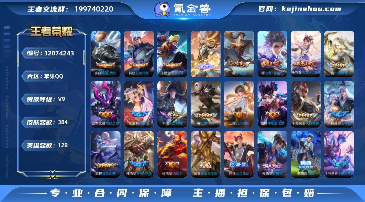 V9 3典藏 1无双 1珍品传说 27传说 128英雄 384皮肤 可修改实名 男号 【英雄全皮】曜全皮,刘邦全皮,夏洛特全皮,猪八戒全皮,影全皮,大禹全皮 【稀有英雄】敖隐(小龙人),大司命,嬴政(始皇帝),韩信(韩跳跳),夏洛特(夏师傅),艾琳,橘右京(橘子),娜可露露(鸟人),不知火舞,赵云,金蝉(唐僧),戈娅 【荣耀水晶】鸣剑·曳影,弑枪猎影(韩信典藏),全息碎影(猴子典藏) 【无双皮】器灵·螭龙剑 【珍品传说】怪盗基德 【传说皮】乘龙·问璇玑(孙尚香年限),幻光神枪,李逍遥,黄金白羊座,零号·赤焰,地狱火,仲夏夜之梦(大飞蛾),地狱之眼,末日机甲-孙尚香(绿蚂蚱),一念神魔,久胜战神,猫影幻舞,云鹰飞将(小将军),炽阳神光,超时空战士-狄仁杰,末日机甲-孙策,山海·苍雷引(电光曜子),画中仙,浮生妄 【珍宝阁皮】妄想食味,女武神,玩趣恶龙 【赛季/战令皮】噬灭天穹(s37),古海寻踪(s33),海盐诗旅(s30),擒涛扼浪(s31),探海日志(s32),剑破天穹(s35),天穹祈灯(s34),天穹之誓(s36),饕餮(s9),重明(s11),穷奇(s12),御狮(s13),御霄(s14),御旌(s15),御銮(s16),朔风刀(s17),混沌棋(s18),疑决卦(s19),醍醐杖(s20),原初探秘者(s21),万华元夜(s22),演武夺筹(s23),驱傩正仪(s24),千军破阵(s25),猎兽之王,白昼王子,朔望之晖,蓝屏警告,神迹守卫-钟馗,狮舞东方,赤莲之焰,驯魔猎人,星空之诺,银河之约,夺宝奇兵,迷踪丽影,西部大镖客-猪八戒,暗影游猎(游乐娃子),单词大作战,狂想玩偶喵,潮玩骑士王,云间偶戏,星际陆战队-达摩,胡桃异想国,神迹守卫-墨子,航海奇遇记,沙漠行僧(s26),金庭之子(s27),大漠名商(s28),云中旅人(s29) 【史诗皮】谪仙醉月,炽弈燎原,星界特工,百相守梦-百里守约,茶境仙,战舞者,蒙犽顽岩魄,埋骨钱,化蝶舞,线条小狗-周瑜,百相守梦-黄忠,龙之律动,紫霞仙子,电玩小子(小书包),白龙吟,黄