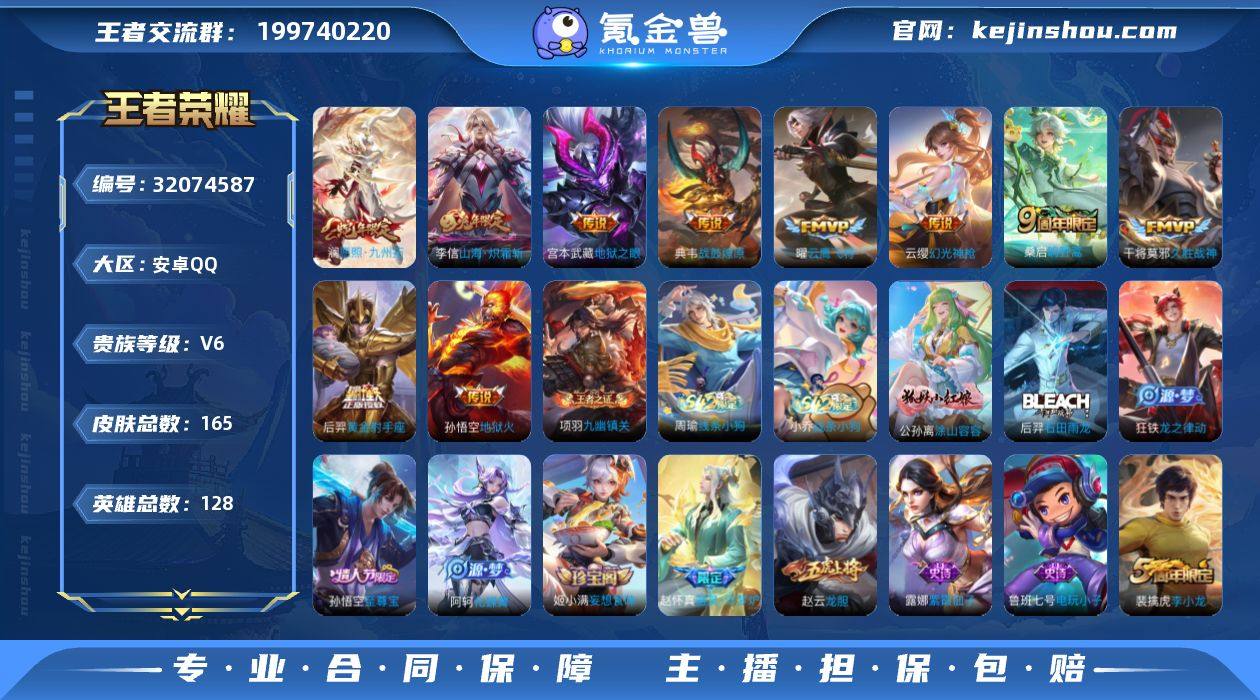 【XY626】贵族6/皮肤165/传说11/史诗49/英雄128/敖隐全皮/狄仁杰神骥赴朔漠/愿照·九州拓/幻光神枪/鸣野蒿/典韦战鼓燎原/山海·炽霜斩/云鹰飞将/久胜战神/黄金射手座/地狱之眼/地狱火/蒙犽顽岩魄/天穹之誓(s36)/阴阳师/皇家上将/龙胆/蔷薇恋人/无心/魔术师/万华元夜(s22)/沙漠行僧(s26)/海滩派对/醍醐杖(s20)/演武夺筹(s23)/金庭之子(s27)/至尊宝/云中旅人(s29)/驱傩正仪(s24)/黎明之约/原初探秘者(s21)/千军破阵(s25)/顽趣-梦奇/大漠名商(s28)/疑决卦(s19)/李小龙/擒涛扼浪(s31)/探海日志(s32)/海盐诗旅(s30)/古海寻踪(s33)/蒙恬荣光圣徽/鬼谷子天穹祈灯(S34)/妄想食味/超元猎域/剑破天穹(s35)/噬灭天穹(s37)/谧流熔炉/虚灵犬护/星界战将/九幽镇关/线条小狗-周瑜/线条小狗-小乔/涂山容容/石田雨龙/龙之律动/化蝶舞/器灵·浮梦炉/星界特工/真我赫兹(百里守约)/电玩·爆裂旋风/玫瑰异探/鹰眼统帅/猫狗日记-孙策/节奏热浪/星夜王子/功夫厨神/逐浪之夏/舞动绿茵/曙光守护者/特工魅影/心灵骇客/黄金分割率/暗隐猎兽者/乘风破浪/德古拉伯爵/水晶猎龙者/白龙吟/幽灵船长/圣诞狂欢/金属风暴/摇滚巨星/水果甜心/鬼剑武藏/紫霞仙子/电玩小子/兰陵王雾影缉谜/溯影追猎/锦麟游梦/死霸装/星梦巡礼/雪境奇遇-西施/铁骨偃魂/苍林狼骑/敬我三分/经纬探寻者/功夫炙烤/劲辣红锅/潮玩探月行/无双福将/潮玩牛仔/乓乓大师/缤纷绘卷/秘密基地/特工战影/次元突破/炽热元素使/鲨炮海盗猫/野性能量/丁香结/虹云星官/守护之力/坚韧之力/幻乐之宴/敏锐之力/掌控之力/沉稳之力/功夫老勺/命运角斗场/幻想奇妙夜/海滩丽影/龙腾万里/汉昭烈帝/阿尔法小队/万事如意/花好人间/兔女郎/拳王/死亡骑士/黄金武士/少女阿狸/时尚教父/天使之翼/玩偶对对碰/未来纪元-宫本武藏/化身博士/白色死神/红桃皇后/忍·炎影/大发明家/爱心护理/街头霸王/教廷特使/画中游/...