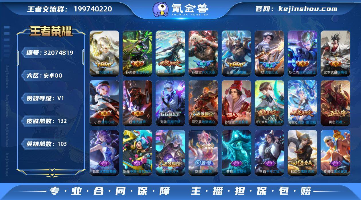 无二次-安卓Q-V7-永恒钻石IV段位-103英雄-132皮肤-10传说-34史诗HZ2635013 【传说皮肤】:赵云乘龙铭钟鼎,铠琥珀纪元,宫本武藏惊梅引,孙悟空齐天大圣,吕布怒海麟威,小乔音你心动,铠绛天战甲,镜炽阳神光,孙尚香末日机甲,狄仁杰超时空战士 【限定皮肤】:狄仁杰阴阳师,赵云皇家上将,马可波罗山海玄木吟,狄仁杰魔术师,项羽海滩派对,孙悟空美猴王,孙悟空大圣娶亲,孙悟空齐天大圣,刘备百相守梦,干将莫邪胡桃夹子,蔡文姬繁星吟游,黄忠烈魂,裴擒虎擒涛扼浪,上官婉儿梁祝,嫦娥拒霜思,嫦娥暖冬兔眠,鲁班大师探海日志,桑启海盐诗旅,暃星界游侠,艾琳流音漫舞,司空震地狱燃心,阿古朵江河有灵,张良古海寻踪,蒙犽百解令,蒙恬荣光圣徽,高渐离燃音魔法,妲己灵卜魔法,鬼谷子天穹祈灯,铠琥珀纪元,安琪拉乘龙聚宝船,赵云乘龙铭钟鼎,沈梦溪龙舞盛年,鲁班七号蔬乡物语,李元芳蔬乡物语,刘邦剑破天穹,程咬金群星魔术团,刘备异域游侠,周瑜熔金海岸 【年限皮肤】:孙悟空美猴王,马可波罗山海玄木吟,赵云乘龙铭钟鼎,安琪拉乘龙聚宝船 【赛季限定】:桑启海盐诗旅,裴擒虎擒涛扼浪,鲁班大师探海日志,张良古海寻踪,鬼谷子天穹祈灯,刘邦剑破天穹,钟馗虚灵犬护,亚瑟荣光之誓,蒙恬荣光圣徽 【战令限定】:暃星界游侠,嫦娥暖冬兔眠,司空震地狱燃心,艾琳流音漫舞,高渐离燃音魔法,妲己灵卜魔法,鲁班七号蔬乡物语,李元芳蔬乡物语 【史诗皮肤】:鲁班七号蔬乡物语,安琪拉乘龙聚宝船,蒙恬荣光圣徽,高渐离燃音魔法,妲己灵卜魔法,蒙犽百解令,阿古朵江河有灵,司空震地狱燃心,刘禅电玩爆裂旋风,刘备百相守梦,马可波罗山海玄木吟,暃星界游侠,嫦娥拒霜思,黄忠烈魂,大乔白蛇,蔡文姬繁星吟游,上官婉儿梁祝,狄仁杰鹰眼统帅,孙悟空大圣娶亲,孙策猫狗日记,阿轲节奏热浪,李元...