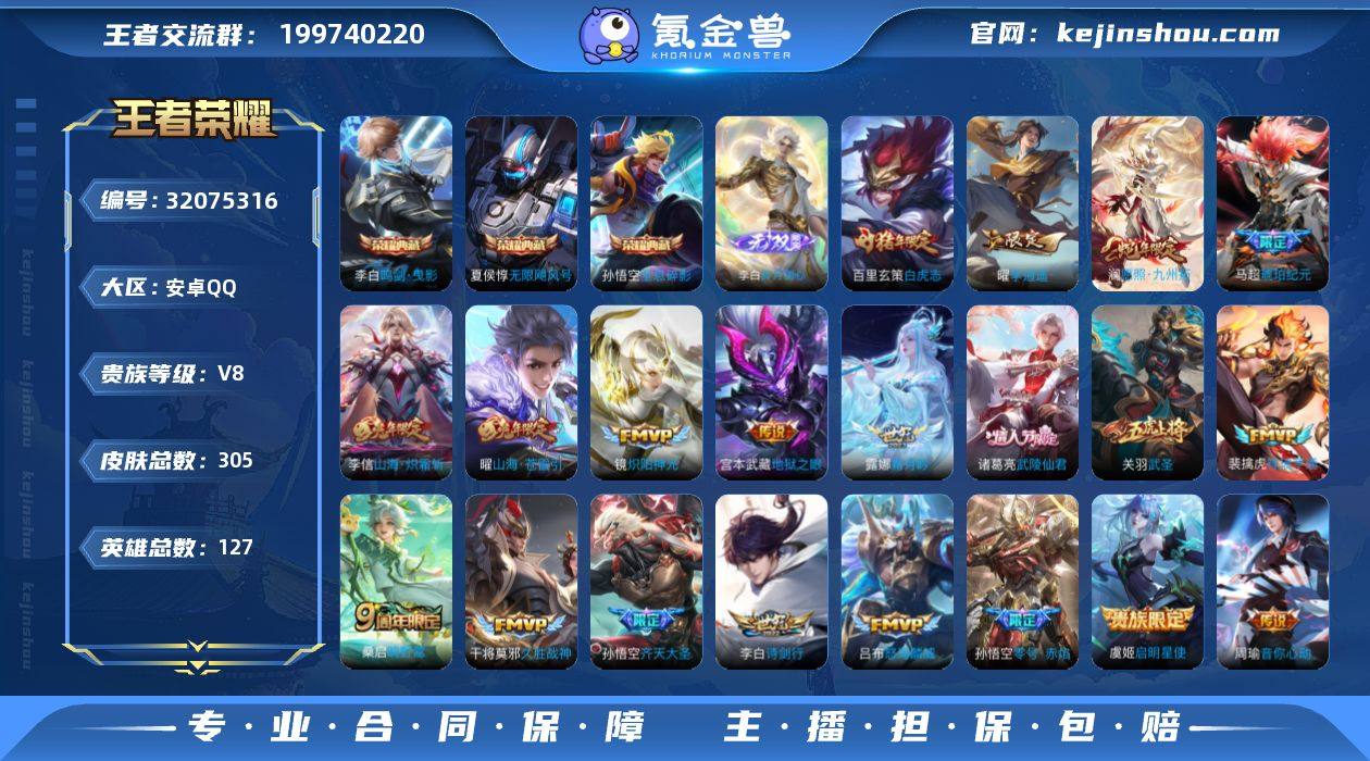 无二次-安卓Q-V8-最强王者段位-127英雄-305皮肤-3典藏皮肤-1无双-20传说-88史诗HZ2635012 【英雄全皮】:孙权全皮,影全皮 【荣耀典藏】:孙悟空全息碎影,夏侯惇无限飓风号,李白鸣剑曳影 【无双皮肤】:李白碎月剑心 【传说皮肤】:澜愿照九州拓,裴擒虎祥瑞亨通,桑启鸣野蒿,马超琥珀纪元,露娜霜月吟,孙悟空齐天大圣,曜山海苍雷引,李信山海炽霜斩,吕布怒海麟威,李白诗剑行,曜李逍遥 ,周瑜音你心动,镜炽阳神光,虞姬启明星使,孙悟空零号赤焰,关羽武圣,干将莫邪久胜战神,百里玄策白虎志,诸葛亮武陵仙君,宫本武藏地狱之眼 【限定皮肤】:白起狰,狄仁杰阴阳师,虞姬凯尔特女王,赵云皇家上将,墨子神迹守卫,嬴政优雅恋人,嬴政白昼王子,孙尚香蔷薇恋人,鲁班七号狮舞东方,庄周高山流水,孙膑妖精王,扁鹊炼金王,芈月重明,芈月幻夜卜梦,吕布猎兽之王,元歌无心,夏侯惇朔风刀,甄姬游园惊梦,曹操烛龙,典韦穷奇,典韦蓝屏警告,马可波罗暗影游猎,马可波罗山海玄木吟,狄仁杰魔术师,狄仁杰万华元夜,达摩沙漠行僧,项羽海滩派对,老夫子醍醐杖,老夫子航海奇遇记,关羽冰锋战神,关羽武圣,程咬金演武夺筹,韩信逐梦之影,兰陵王金庭之子,孙悟空至尊宝,孙悟空大圣娶亲,孙悟空零号赤焰,孙悟空孙行者,孙悟空齐天大圣,牛魔御旌,后羿圣弓游侠,李元芳云中旅人,虞姬启明星使,钟馗神迹守卫,钟馗驱傩正仪,杨玉环遇见飞天,女娲朔望之晖,干将莫邪真爱魔法,雅典娜单词大作战,雅典娜黎明之约,蔡文姬繁星吟游,太乙真人饕餮,鬼谷子原初探秘者,鬼谷子五谷丰年,诸葛亮武陵仙君,黄忠烈魂,黄忠火炮绅士,苏烈千军破阵,百里玄策白虎志,百里玄策原初追逐者,弈星混沌棋,梦奇顽趣,沈梦溪大漠名商,明世隐疑决卦,裴擒虎李小龙,裴擒虎擒涛扼浪,狂铁御狮,米莱狄御霄,云中君纤云弄...
