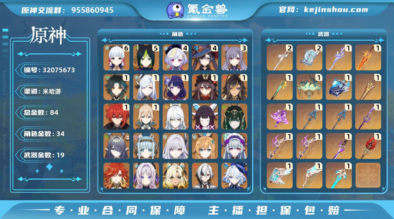 冒险等级:60 总黄数:84 5星角色数:34 5星武器数:19 原石数量:58 相遇之缘数量:0 纠缠之源数量:0 6命神里绫华,5命提纳里,4命七七,4命莫娜,3命刻晴,1命魈,1命申鹤,1命雷电将军,1命胡桃,1命迪希雅,1命迪卢克,1命琴,0命兹白,0命哥伦比娅,0命奈芙尔,0命菈乌玛,0命伊涅芙,0命丝柯克,0命爱可菲,0命梦见月瑞希,0命玛薇卡,0命茜特菈莉,0命希诺宁,0命阿蕾奇诺,0命芙宁娜,0命流浪者,0命纳西妲,0命妮露,0命八重神子,0命珊瑚宫心海,0命宵宫,0命枫原万叶,0命甘雨,0命可莉 6命爱诺,6命班尼特,6命久岐忍,6命绮良良,6命香菱,6命行秋,6命芭芭拉,6命北斗,6命迪奥娜,6命多莉,6命珐露珊,6命菲谢尔,6命卡维,6命坎蒂丝,6命罗莎莉亚,6命莱依拉,6命鹿野院平藏,6命米卡,6命诺艾尔,6命凝光,6命砂糖,6命托马,6命五郎,6命辛焱,6命瑶瑶,6命云堇,6命早柚,5命欧洛伦,5命赛索斯,5命柯莱,4命伊法,3命嘉明,3命卡齐娜,3命蓝砚,3命塔利雅,3命雷泽,2命琳妮特,2命伊安珊,2命九条裟罗,2命凯亚,2命烟绯,1命叶洛亚,1命安柏,1命重云,1命丽莎,0命菲米尼,0命夏洛蒂,0命夏沃蕾 精2风鹰剑,精2四风原典,精1苍耀,精1焚曜千阳,精1岩峰巡歌,精1鹤鸣余音,精1万世流涌大典,精1圣显之钥,精1神乐之真意,精1息灾,精1薙草之稻光,精1飞雷之弦振,精1雾切之回光,精1护摩之杖,精1天空之卷,精1天空之翼,精1天空之刃 100%侦察骑士,古恩希尔德的传承,帆影游风,花时来信,冷花幽露,霓裾翩跹,琪花星烛,倩影游侠,莎邦之息,宿雪桃红,岁夜欢哗,玄玉瑶芳,星与月之约,雨化竹身,叶隐芳名,致教会自由人