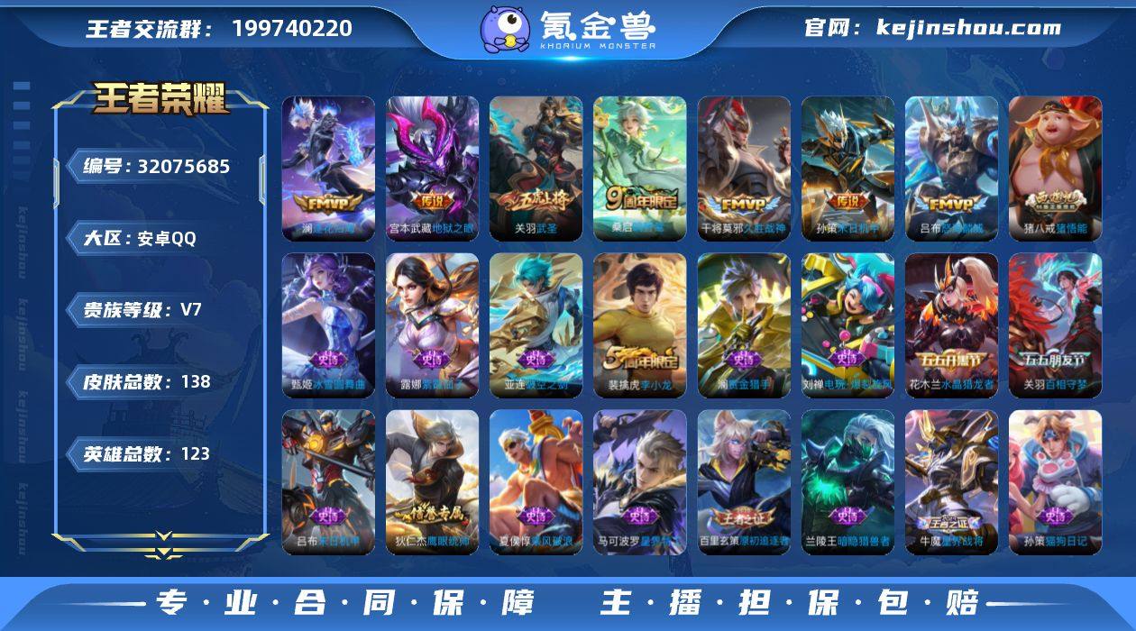 无二次-安卓Q-V7-永恒钻石III段位-123英雄-138皮肤-7传说-29史诗 【传说皮肤】:桑启鸣野蒿,澜逐花归海,吕布怒海麟威,孙策末日机甲,关羽武圣,干将莫邪久胜战神,宫本武藏地狱之眼 【限定皮肤】:白起狰,姜子牙天穹之誓,狄仁杰阴阳师,虞姬凯尔特女王,赵云皇家上将,庄周蜃楼王,孙膑妖精王,扁鹊炼金王,扁鹊奇幻香踪,芈月重明,曹操烛龙,典韦穷奇,狄仁杰魔术师,狄仁杰万华元夜,达摩沙漠行僧,项羽海滩派对,老夫子醍醐杖,关羽武圣,关羽百相守梦,亚瑟狮心王,杨戬潮玩骑兵,鬼谷子原初探秘者,苏烈千军破阵,百里玄策原初追逐者,弈星混沌棋,沈梦溪大漠名商,明世隐疑决卦,裴擒虎李小龙,裴擒虎擒涛扼浪,狂铁御狮,猪八戒猪悟能,鲁班大师探海日志,桑启海盐诗旅,张良古海寻踪,蒙恬荣光圣徽,鬼谷子天穹祈灯,刘邦剑破天穹,程咬金群星魔术团,周瑜熔金海岸 【赛季限定】:亚瑟狮心王,庄周蜃楼王,孙膑妖精王,扁鹊炼金王,虞姬凯尔特女王,白起狰,曹操烛龙,芈月重明,典韦穷奇,狂铁御狮,弈星混沌棋,明世隐疑决卦,老夫子醍醐杖,鬼谷子原初探秘者,狄仁杰万华元夜,苏烈千军破阵,达摩沙漠行僧,沈梦溪大漠名商,桑启海盐诗旅,裴擒虎擒涛扼浪,鲁班大师探海日志,张良古海寻踪,鬼谷子天穹祈灯,刘邦剑破天穹,姜子牙天穹之誓,东皇太一噬灭天穹,太乙真人谧流熔炉,钟馗虚灵犬护,甄姬逆浪荇歌,百里玄策原初追逐者,蒙恬荣光圣徽,牛魔星界战将 【战令限定】:扁鹊奇幻香踪,杨戬潮玩骑兵,亚连破空之剑,孙悟空神迹守卫 【史诗皮肤】:牛魔星界战将,马可波罗星界特工,亚连破空之剑,蒙恬荣光圣徽,刘禅电玩爆裂旋风,关羽百相守梦,扁鹊奇幻香踪,澜赏金猎手,哪吒雪上飞焰,猪八戒猪悟能,裴擒虎李小龙,百里玄策原初追逐者,狄仁杰鹰眼统帅,孙策猫狗日记,程咬金功夫厨神,...