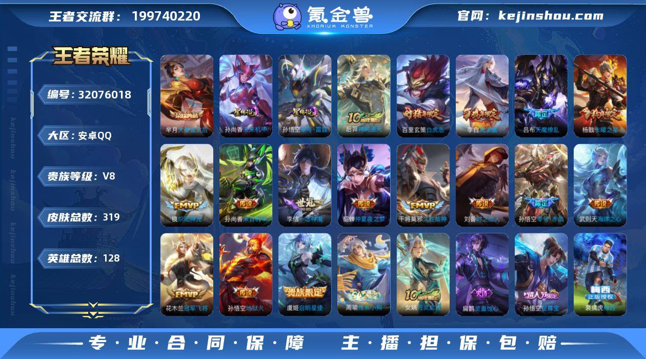 C-AC14647 安卓QQ V8 319皮 2典藏2星元 103限定16传说 巅峰1322 发育路25段 全能高手 金标程咬金/杨玉环 192幸运值 3按键1天幕 136蔷薇之心 4044星币 794英雄碎片 126皮肤碎片 27印记 营地号:74402031 【荣耀典藏】武则天,大秦宣太后, 【星元皮肤】未来机甲,零号雷霆, 【热门限定】凤求凰,至尊宝,白虎志,瑞麟志,玄武志,神威,虎魄,烈魂,梅西,天魔缭乱,零号·赤焰,永曜之星,天狼绘梦者,逐梦之影,逐梦之翼,引擎之心,青春决赛季,蜜橘之夏,冰霜恋舞曲,暗影游猎,热情桑巴,狮心王,启明星使,万灵启世, 【限定传说】猫狗日记男,久胜战神,一念神魔,猪悟能,蓝屏警告,地狱火,时之恋人男,时之恋人女,修罗,冠军飞将,梁祝,未来纪元,神迹守卫,炽阳神光,黄金分割率,仲夏夜之梦,晚萤,海洋之心,千年之狐,末日机甲男,末日机甲女,遇见神鹿,原初探秘者,原初追逐者,黎明之约,暗隐猎兽者,水晶猎龙者,金属风暴,地狱岩魂,特工魅影,曙光守护者,白龙吟,圣诞恋歌,舞动绿茵,逐浪之夏,心灵战警,紫霞仙子,功夫厨神,心灵骇客,狮舞东方,幽灵船长,乘风破浪,圣诞狂欢,星夜王子,节奏热浪,天才门将,绅士熊喵,暗夜贵公子,偶像歌手,街头霸王,无畏之灵·狰,摇滚巨星,缤纷独角兽,星空之诺,鬼剑武藏,朔望之晖,德古拉伯爵,赤莲之焰,银河之约,猎兽之王,云间偶戏,死神来了,冰冠公主,狂想玩偶喵,单词大作战,花好人间,蜃楼王,妖精王,炼金王,凯尔特女王,饕餮,烛龙,重明,穷奇,御狮,御霄,御旌,御銮,朔风刀,混沌棋,疑决卦,醍醐杖,万华元夜,东方不败,黑猫爱糖果,如懿,拳王,女仆咖啡,霸王丸,敏锐之力,丁香结,科学大爆炸,重装意志,炽阳神光,