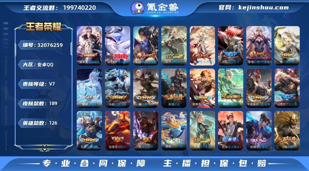 安卓Q-V7-永恒钻石II段位-126英雄-189皮肤-1典藏皮肤-1珍品传说-17传说-34史诗 QW263516 【英雄全皮】:孙权全皮,马超全皮,影全皮 【荣耀典藏】:诸葛亮星域神启 【珍品传说】:马可波罗怪盗基德 【传说皮肤】:马超神骥逐星野,后羿神树通天,澜愿照九州拓,裴擒虎祥瑞亨通,桑启鸣野蒿,马超琥珀纪元,露娜霜月吟,孙悟空齐天大圣,李信山海炽霜斩,吕布怒海麟威,马超无双飞将,铠绛天战甲,镜炽阳神光,关羽武圣,曜云鹰飞将,干将莫邪久胜战神,孙悟空地狱火 【限定皮肤】:大乔绒语心约,姜子牙天穹之誓,李白谪仙醉月,狄仁杰阴阳师,赵云皇家上将,夏侯惇朔风刀,狄仁杰魔术师,狄仁杰万华元夜,达摩沙漠行僧,项羽海滩派对,老夫子醍醐杖,关羽冰锋战神,关羽武圣,程咬金演武夺筹,兰陵王金庭之子,孙悟空至尊宝,孙悟空齐天大圣,李元芳云中旅人,钟馗驱傩正仪,鬼谷子原初探秘者,黄忠烈魂,弈星混沌棋,沈梦溪大漠名商,明世隐疑决卦,裴擒虎擒涛扼浪,云中君纤云弄巧,李信山海炽霜斩,鲁班大师探海日志,张良古海寻踪,鬼谷子天穹祈灯,马超琥珀纪元,姬小满妄想食味,刘邦剑破天穹,周瑜熔金海岸 【年限皮肤】:李信山海炽霜斩,澜愿照九州拓 【赛季限定】:夏侯惇朔风刀,弈星混沌棋,明世隐疑决卦,老夫子醍醐杖,鬼谷子原初探秘者,狄仁杰万华元夜,程咬金演武夺筹,钟馗驱傩正仪,达摩沙漠行僧,兰陵王金庭之子,沈梦溪大漠名商,李元芳云中旅人,裴擒虎擒涛扼浪,鲁班大师探海日志,张良古海寻踪,鬼谷子天穹祈灯,刘邦剑破天穹,姜子牙天穹之誓,东皇太一噬灭天穹,太乙真人谧流熔炉,钟馗虚灵犬护,甄姬逆浪荇歌,亚瑟荣光之誓 【战令限定】:百里守约百相守梦,老夫子百相守梦,孙膑茶境仙,马超访茗客,周瑜线条小狗 【史诗皮肤】:周瑜线条小狗,女娲万灵启世,狂铁龙之律动,姬小满...