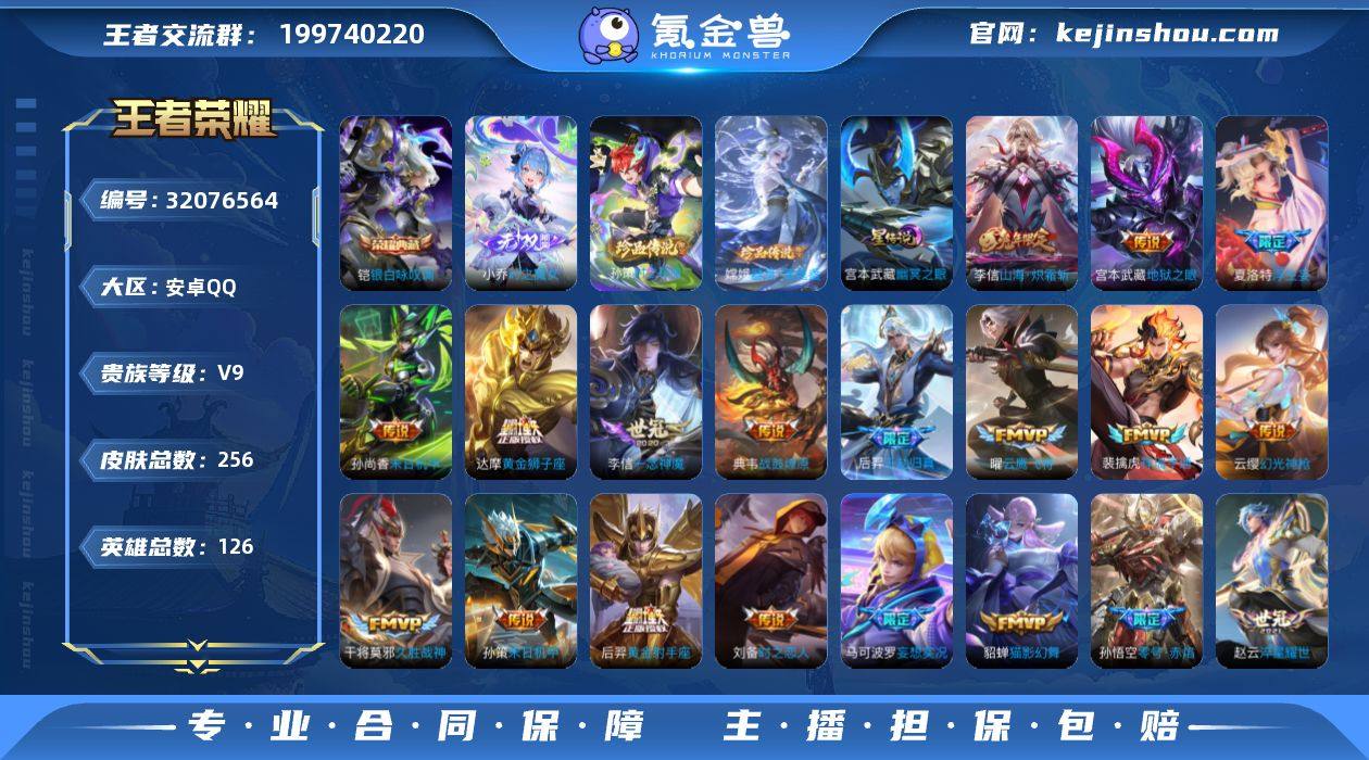 天幕·时之魔女·银白咏叹调·时之奇旅·器灵落星盏·千劫归真·愿照山河定·愿照千秋盛·影龙天霄·妄想实况·浮生妄·齐天大圣·山海炽霜斩·异界灵契·祈雪灵祝·时雨天司·绛天战甲·零号赤焰·武圣·一念神魔·白虎志·地狱之眼·天魔缭乱·引擎之心·龙胆·青龙志·可二次】w15486-安卓Q-126英雄-256皮肤-7王者印记-200铭文-贵族积分11w【贵族9】【1典藏·1无双·2珍品·1星传说·42传说·1天幕·10按键】【因赛季更新游戏段付以上号为准!】 【英雄全皮】:李信全皮,影全皮 【荣耀典藏】:铠银白咏叹调 【无双皮肤】:小乔时之魔女 【珍品传说】:孙策时之奇旅,嫦娥器灵落星盏 【星元皮肤】:宫本武藏幽冥之眼 【天幕】:财神纳福天幕 【传说皮肤】:后羿神树通天,后羿千劫归真,司空震愿照山河定,女娲愿照千秋盛,妲己愿照众生和,澜愿照九州拓,蔡文姬愿照福禄聚,虞姬愿照岁时盈,云缨幻光神枪,裴擒虎祥瑞亨通,桑启鸣野蒿,典韦战鼓燎原,兰陵王影龙天霄,马可波罗妄想实况,夏洛特浮生妄,孙悟空齐天大圣,李信山海炽霜斩,吕布怒海麟威,孙策末日机甲,孙尚香异界灵契,赵云淬星耀世,公孙离祈雪灵祝,诸葛亮时雨天司,铠绛天战甲,虞姬启明星使,孙悟空零号赤焰,关羽武圣,曜云鹰飞将,李信一念神魔,刘备时之恋人,貂蝉猫影幻舞,张良黄金白羊座,干将莫邪久胜战神,达摩黄金狮子座,百里玄策白虎志,花木兰冠军飞将,梦奇胖达荣荣,后羿黄金射手座,孙尚香末日机甲,宫本武藏地狱之眼,孙悟空地狱火,吕布天魔缭乱 【限定皮肤】:蒙犽顽岩魄,蔡文姬夏日便利店,大乔绒语心约,虞姬夏日便利店,姜子牙天穹之誓,李白谪仙醉月,狄仁杰阴阳师,赵云皇家上将,赵云引擎之心,赵云龙胆,嬴政优雅恋人,嬴政白昼王子,孙尚香异界灵契,鲁班七号狮舞东方,阿轲迷踪丽影,钟无艳王者之锤,芈月重明,吕布天魔缭乱,吕布猎兽之王,夏...
