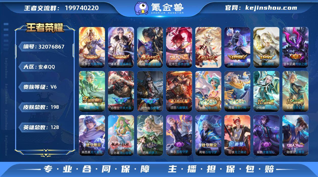 【特价出售】安卓q-V-198皮肤2典藏8传说 【典藏】 星域神启 九霄神辉 【传说】 逐花归海 异界灵契花木兰 神骥逐星野 愿照九州拓 鸣野蒿 齐天大圣 炽阳神光 地狱之眼 【热门】万灵启世 巫礼祀神 涂山容容 百晓客 至尊宝 逐霄之志 傲雪梅枪 暗影游猎 原初追逐者 梁祝 云间偶戏 龙骑士 织梦人 黄忠百相守梦 灵蛊蚀心 器灵浮梦炉 燃音魔法 天秀启明 李小龙 水晶猎龙者 暗隐猎兽者 猫狗日记男 金属风暴 地狱岩魂 特工魅影 曙光守护者 特工战影 妄想食味 逐浪之夏 千年之狐 紫霞仙子 功夫厨神 圣诞恋歌 幽灵船长 乘风破浪 末日机甲男 星夜王子 赏金猎手 节奏热浪 天才门将 时之恋人女 偶像歌手 街头霸王 箭羽风息 摇滚巨星 缤纷独角兽 鬼剑武藏 东方不败 克喵 演武夺筹 驱傩正仪 未来纪元赵云 千军破阵 拳王 大漠名商 敏锐之力 云中旅人 丁香结 海盐诗旅 皇家上将 擒涛扼浪 探海日志 水果甜心 古海寻踪 天穹祈灯 高山流水 无心 星界游侠 江河有灵 五谷丰年 乱世虎臣 鹰眼统帅 魔术师 128英雄-营地ID:1797018168