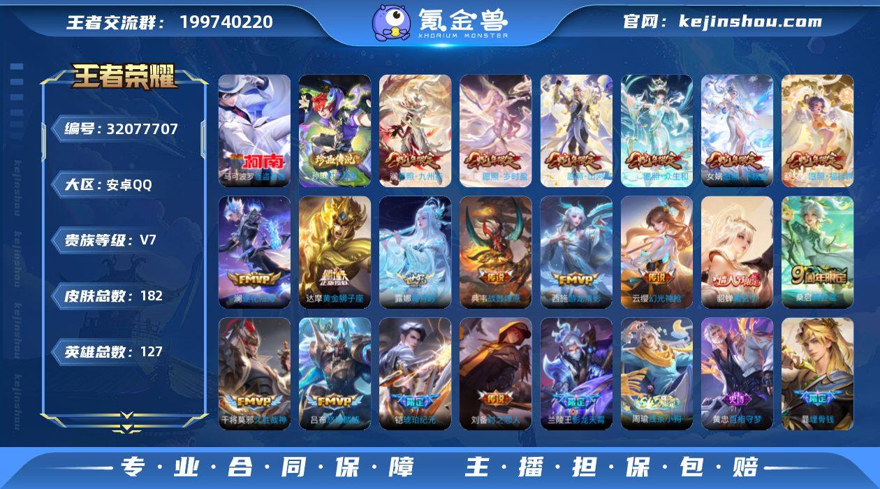 【精品推荐·满蛇年限定·怪盗基德·孙策时之奇旅·愿照山河定·貂蝉曦玄引·铠琥珀纪元·霜月吟·影龙天霄·逐花归海·谪仙醉月·暗影游猎·可二次】YXw15882-安卓Q-127英雄-182皮肤-2王者印记-150铭文-贵族积分4w【贵族7】【2珍品·1星传说·19传说·10按键·241幸运值】【因赛季更新游戏段付以上号为准!】 【英雄全皮】:影全皮 【珍品传说】:马可波罗怪盗基德,孙策时之奇旅 【星元皮肤】:刘备时之思念 【传说皮肤】:司空震愿照山河定,女娲愿照千秋盛,妲己愿照众生和,澜愿照九州拓,蔡文姬愿照福禄聚,虞姬愿照岁时盈,云缨幻光神枪,桑启鸣野蒿,貂蝉曦玄引,典韦战鼓燎原,铠琥珀纪元,澜逐花归海,露娜霜月吟,兰陵王影龙天霄,吕布怒海麟威,西施游龙清影,刘备时之恋人,干将莫邪久胜战神,达摩黄金狮子座 【限定皮肤】:暃埋骨钱,姜子牙天穹之誓,李白谪仙醉月,狄仁杰阴阳师,赵云皇家上将,赵云引擎之心,元歌无心,马可波罗暗影游猎,狄仁杰魔术师,项羽海滩派对,兰陵王影龙天霄,李元芳云中旅人,鬼谷子五谷丰年,沈梦溪大漠名商,裴擒虎李小龙,裴擒虎擒涛扼浪,云中君纤云弄巧,嫦娥拒霜思,鲁班大师探海日志,桑启海盐诗旅,阿古朵江河有灵,张良古海寻踪,蒙犽百解令,高渐离燃音魔法,妲己灵卜魔法,鬼谷子天穹祈灯,铠琥珀纪元,姬小满妄想食味,安琪拉乘龙聚宝船,貂蝉曦玄引,沈梦溪龙舞盛年,鲁班七号蔬乡物语,李元芳蔬乡物语,周瑜熔金海岸 【年限皮肤】:安琪拉乘龙聚宝船,司空震愿照山河定,女娲愿照千秋盛,妲己愿照众生和,澜愿照九州拓,蔡文姬愿照福禄聚,虞姬愿照岁时盈 【赛季限定】:沈梦溪大漠名商,李元芳云中旅人,桑启海盐诗旅,裴擒虎擒涛扼浪,鲁班大师探海日志,张良古海寻踪,鬼谷子天穹祈灯,姜子牙天穹之誓,东皇太一噬灭天穹,太乙真人谧流熔炉,甄姬逆浪荇歌,亚瑟荣光之...