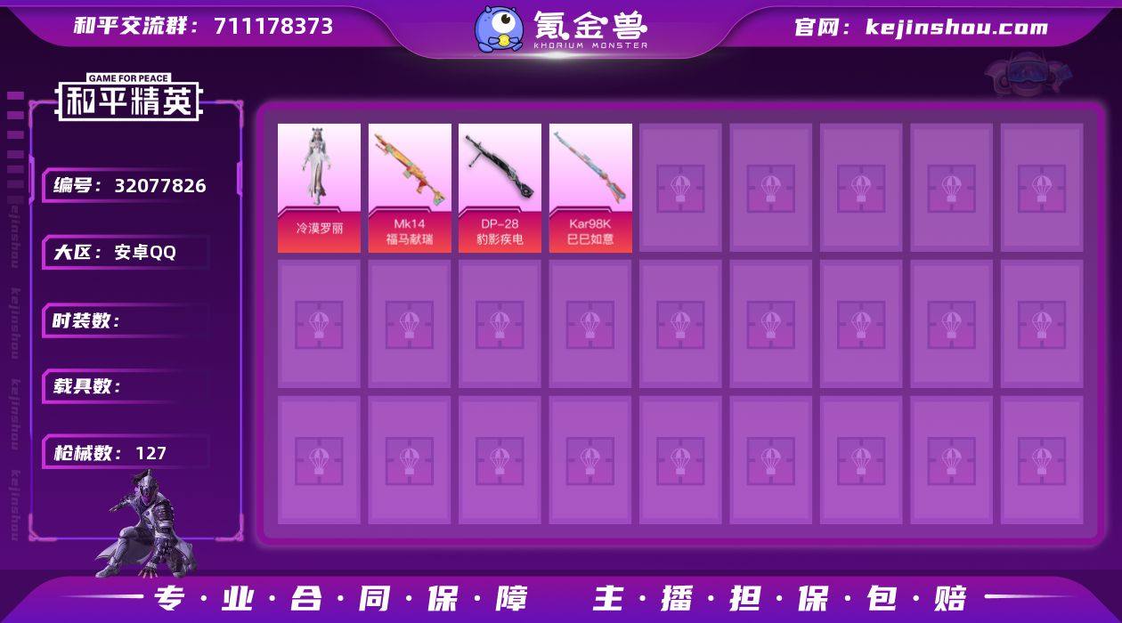 【0载具 3特效枪 1粉装 127枪皮 79套装】角色-冷漠罗丽 Kar98K-巳巳如意,Mk14-福马献瑞,DP-28-豹影疾电 马上有福飞行器,异域银装飞行器,炫彩糖果飞行器,鸡智如我飞行器,狂鲨锋刃飞行器,编号:ZPDJP23