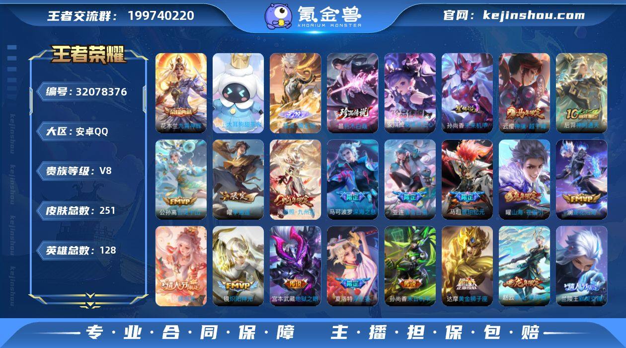 【高性价比·全皮曜·全皮西施·金标准万战曜·九霄神辉·暃朽木白哉·酷洛米之心·小兵大耳狗甜茶会·云缨神骥越千峰·云诺千山·澜愿照九州拓·落雪白狼·乘龙铭钟鼎·澜逐花归海·马超琥珀纪元·记忆之芯·可二次】YXw17481-安卓Q-128英雄-251皮肤-15王者印记-170铭文-贵族积分9w【贵族8】【1典藏·1无双·2珍品·2星传说·30传说·20按键】【因赛季更新游戏段付以上号为准!】 【英雄全皮】:孙权全皮,敖隐全皮,曜全皮,西施全皮,蒙恬全皮,夏洛特全皮,暃全皮,空空儿全皮,影全皮,少司缘全皮 【荣耀典藏】:花木兰九霄神辉 【无双皮肤】:曜器灵螭龙剑 【珍品传说】:暃朽木白哉,安琪拉酷洛米之心 【星元皮肤】:孙尚香未来机甲,刘备时之思念 【小兵皮肤】:小兵大耳狗甜茶会 【传说皮肤】:云缨神骥越千峰,后羿神树通天,公孙离云诺千山,西施续相思,澜愿照九州拓,桑启鸣野蒿,亚连落雪白狼,赵云乘龙铭钟鼎,马超琥珀纪元,澜逐花归海,上官婉儿妄想奇谈,公孙离记忆之芯,夏洛特浮生妄,干将莫邪画中仙,曜山海苍雷引,马可波罗深海之息,孙策挚爱之约,西施游龙清影,曜李逍遥 ,小乔音你心动,兰陵王默契交锋,镜炽阳神光,虞姬启明星使,曜云鹰飞将,刘备时之恋人,达摩黄金狮子座,梦奇胖达荣荣,诸葛亮武陵仙君,孙尚香末日机甲,宫本武藏地狱之眼 【限定皮肤】:暃埋骨钱,蔡文姬夏日便利店,虞姬夏日便利店,姜子牙天穹之誓,狄仁杰阴阳师,赵云皇家上将,扁鹊奇幻香踪,白起夜都怪侠,吕布猎兽之王,元歌无心,马可波罗深海之息,狄仁杰魔术师,达摩沙漠行僧,项羽海滩派对,露娜一生所爱,兰陵王默契交锋,兰陵王金庭之子,花木兰默契交锋,孙悟空至尊宝,李元芳银河之约,李元芳云中旅人,虞姬启明星使,杨玉环寅虎心曲,杨戬潮玩骑兵,干将莫邪画中仙,雅典娜黎明之约,诸葛亮武陵仙君,百里玄策原初追逐者...