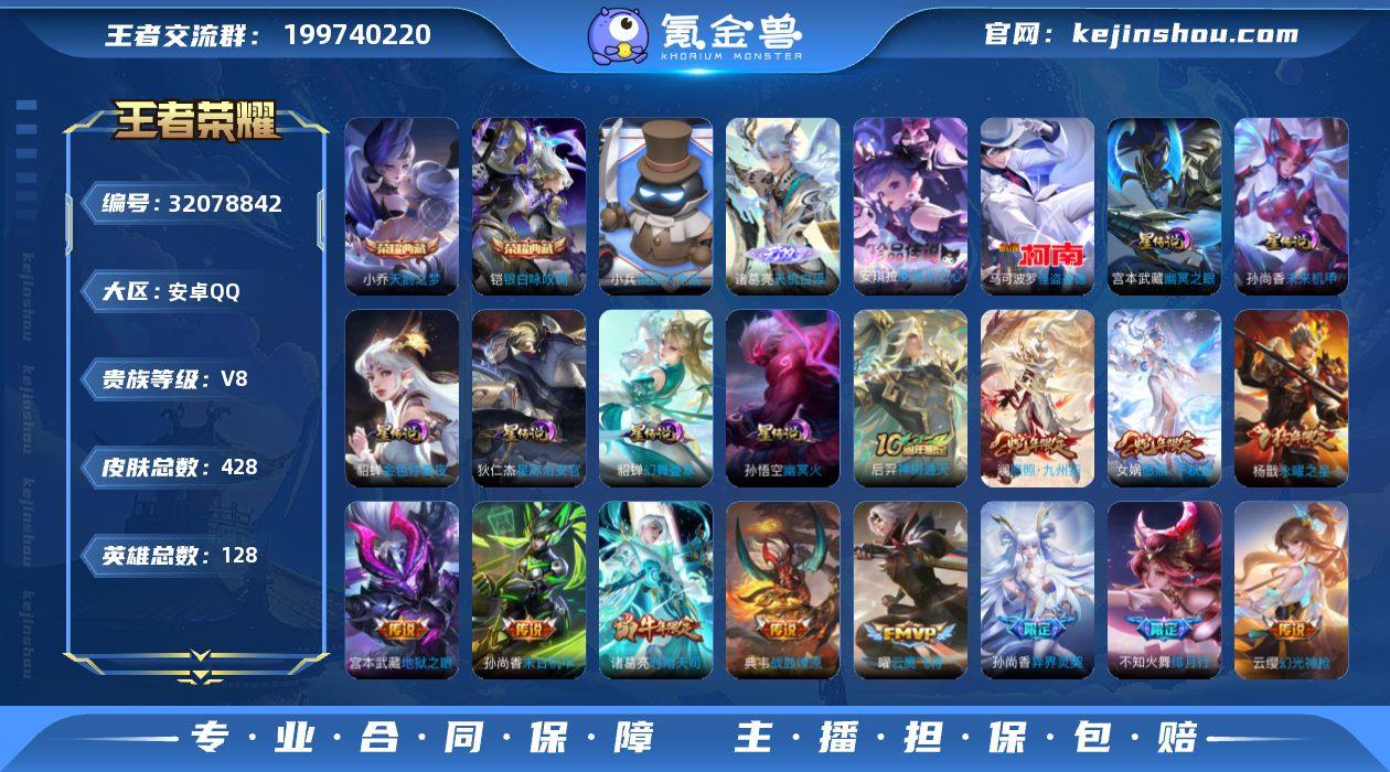 【高性价比·天鹅之梦·银白咏叹调·天机白泽·酷洛米之心·怪盗基德·小兵侦探大作战·幻舞叠翠·时之思念·时雨天司·愿照千秋盛·愿照九州拓·永曜之星·箭叩九天天幕·可二次】YXw17725-安卓Q-128英雄-428皮肤-16王者印记-230铭文-贵族积分8w【贵族8】【2典藏·1无双·2珍品·7星传说·22传说·2天幕·16按键】【因赛季更新游戏段付以上号为准!】 【英雄全皮】:刘禅全皮,孙权全皮,刘备全皮,鬼谷子全皮,敖隐全皮,蒙犽全皮,戈娅全皮,空空儿全皮,影全皮 【荣耀典藏】:小乔天鹅之梦,铠银白咏叹调 【无双皮肤】:诸葛亮天机白泽 【珍品传说】:安琪拉酷洛米之心,马可波罗怪盗基德 【星元皮肤】:貂蝉幻舞叠翠,狄仁杰星际治安官,刘备时之思念,孙尚香未来机甲,孙悟空幽冥火,宫本武藏幽冥之眼,貂蝉金色仲夏夜 【天幕】:箭叩九天天幕,共赏芳华天幕 【小兵皮肤】:小兵侦探大作战 【传说皮肤】:后羿神树通天,女娲愿照千秋盛,澜愿照九州拓,云缨幻光神枪,桑启鸣野蒿,典韦战鼓燎原,不知火舞绯月行,孙尚香异界灵契,诸葛亮时雨天司,虞姬启明星使,孙悟空零号赤焰,曜云鹰飞将,刘备时之恋人,貂蝉猫影幻舞,张良黄金白羊座,干将莫邪久胜战神,杨戬永曜之星,貂蝉仲夏夜之梦,孙尚香末日机甲,宫本武藏地狱之眼,孙悟空地狱火,狄仁杰超时空战士 【限定皮肤】:蒙犽顽岩魄,蔡文姬夏日便利店,大乔绒语心约,虞姬夏日便利店,姜子牙天穹之誓,李白谪仙醉月,狄仁杰阴阳师,赵云皇家上将,墨子神迹守卫,妲己时之彼端,嬴政优雅恋人,孙尚香蔷薇恋人,孙尚香异界灵契,鲁班七号乒乒小将,庄周高山流水,阿轲迷踪丽影,钟无艳超时空战士,扁鹊奇幻香踪,白起夜都怪侠,芈月幻夜卜梦,元歌云间偶戏,元歌无心,甄姬游园惊梦,甄姬落雪兰心,马可波罗暗影游猎,马可波罗山海玄木吟,狄仁杰魔术师,狄仁杰万华元夜,达摩...