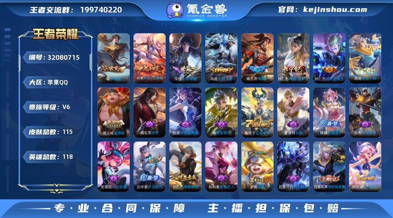 可换绑【男神精品号·李逍遥·龙年孙策·枫霜尽·无双飞将·李信一念神魔】 3397星币 2按键 8王者印记 160五级铭文 可二次BX5047 苹果Q-V6-115皮肤-7传说-32史诗 【英雄全皮】:橘右京全皮【传说皮肤】:孙策乘龙淬吴钩,狄仁杰神器狴犴令,橘右京枫霜尽,马超无双飞将,曜李逍遥 ,李信一念神魔,狄仁杰超时空战士【限定皮肤】:狄仁杰阴阳师,赵云皇家上将,孙尚香蔷薇恋人,庄周高山流水,高渐离死亡摇滚,芈月幻夜卜梦,狄仁杰魔术师,狄仁杰神器狴犴令,达摩沙漠行僧,项羽海滩派对,程咬金演武夺筹,兰陵王金庭之子,橘右京枫霜尽,李元芳云中旅人,钟馗驱傩正仪,鬼谷子五谷丰年,苏烈千军破阵,百里玄策原初追逐者,梦奇顽趣,沈梦溪大漠名商,裴擒虎擒涛扼浪,云中君纤云弄巧,猪八戒猪悟能,嫦娥拒霜思,曜李逍遥 ,鲁班大师探海日志,桑启海盐诗旅,阿古朵江河有灵,张良古海寻踪,蒙犽百解令,鬼谷子天穹祈灯,孙策乘龙淬吴钩,沈梦溪龙舞盛年,鲁班七号蔬乡物语,李元芳蔬乡物语,刘邦剑破天穹,程咬金群星魔术团,关羽决胜骁骑,镜青焰无极,项羽苍威无极【年限皮肤】:孙策乘龙淬吴钩【赛季限定】:程咬金演武夺筹,钟馗驱傩正仪,苏烈千军破阵,达摩沙漠行僧,兰陵王金庭之子,沈梦溪大漠名商,李元芳云中旅人,桑启海盐诗旅,裴擒虎擒涛扼浪,鲁班大师探海日志,张良古海寻踪,鬼谷子天穹祈灯,刘邦剑破天穹,百里玄策原初追逐者,梦奇顽趣【战令限定】:芈月幻夜卜梦,鲁班七号蔬乡物语,李元芳蔬乡物语,镜青焰无极,项羽苍威无极,周瑜线条小狗【史诗皮肤】:周瑜线条小狗,关羽决胜骁骑,镜青焰无极,鲁班七号蔬乡物语,蒙犽百解令,阿古朵江河有灵,梦奇顽趣,鬼谷子五谷丰年,澜赏金猎手,夏洛特永昼,嫦娥拒霜思,庄周高山流水,猪八戒猪悟能,云中君纤云弄巧,百里玄策原初追逐者,橘右京修罗...