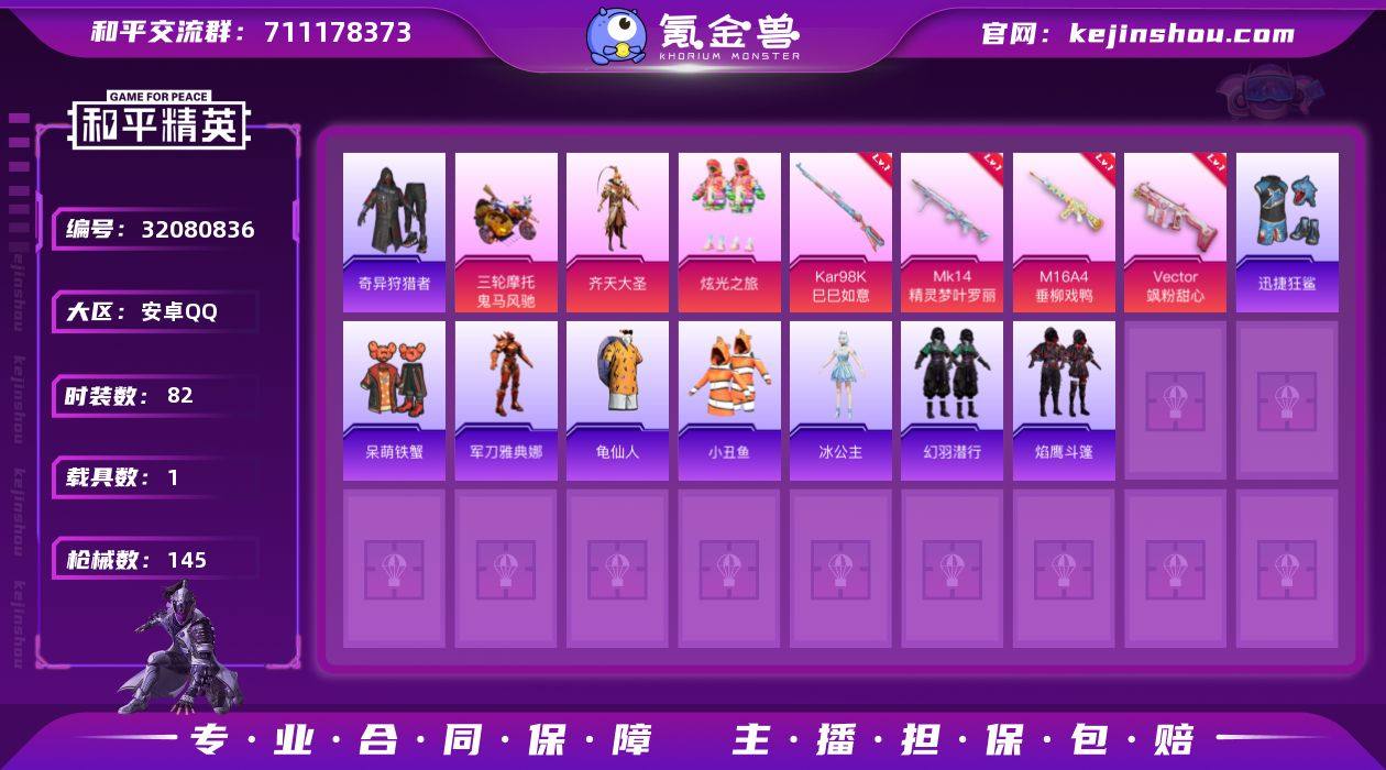 ZMH545【1载具2粉装4特效枪身法号 蜘蛛侠 齐天大圣 精灵梦叶罗丽 (5级)迅捷狂鲨 军刀雅典娜 M4快乐主宰绝版 深海小丑鱼背包】安卓Q-43791热力值 历史荣耀皇冠Ⅴ 82套装 145枪皮 【1载具】 鬼马风驰 【1稀有】 奇异狩猎者 【2粉装】 炫光之旅 齐天大圣 【4特效枪】 Kar98K-巳巳如意 (5级) Vector-飒粉甜心 (7级) Mk14-精灵梦叶罗丽 (5级) M16A4-垂柳戏鸭 (5级) 【2飞行器】 鎏金朋克飞行器 闪光银龙飞行器 【7热门】 龟仙人 呆萌铁蟹 迅捷狂鲨 军刀雅典娜 弄潮海豚 M416-快乐主宰 S686-奇异狩猎者 【3头盔】 百万伏特头盔 幻影战神头盔 深海小丑鱼头盔 【2背包】 深海小丑鱼背包 古堡领主背包 齐天大圣 闪光银龙飞行器 鎏金朋克飞行器 炫光之旅 鬼马风驰 M16A4-垂柳戏鸭 Vector-飒粉甜心 Kar98K-巳巳如意 Mk14-精灵梦叶罗丽 特训学院 白色伏地魔 冰川格斗者 竞技名士 湖蓝色名流 长空猛禽 黎明保卫者 特殊使命 街舞之王 春日漫步 潮流先锋 幻影武者 神秘领域 魅力单车 绮丽涂鸦 耀眼新星 竞技达人朋克 风行保卫者 酷潮明星 幻世战舞者 奇异狩猎者 机械哨兵 弄潮海豚 迅捷狂鲨 呆萌铁蟹 龙魂突击队 元素星魂 麻辣教官 小丑鱼 金环蜂王 阳光火鸡 军械专家 霓虹街区 白熊同盟 萌黄之夏 牛气满满 白糯汤圆 特种颜团子 战术大师 牛气冲天 飞行日记 角色-军刀雅典娜 猎梦纪元 甜心亚梦 虚音幻奏 萌趣咩咩 娇憨猪猪 玉兔迎春 光之冒险 绯格组合 神气柴柴 懵萌河马 冥星暗影 龟仙人 涂山之恋 香桃花海 冰河战士 快闪甜心 春光漫游 空岛之星 焰鹰斗篷 幻羽潜行 恋语绒绒 老实芭蕉 角色-米开朗基罗 角色-冰公主 海盐绵绵冰 创世·追猎 星途旅人 智谋强哥 巳巳如意 勇者同行降落伞 绚烂橙彩降落伞 化学天才降落伞 钢铁雄心降落伞 迎春赐福降落伞 元宵华灯降落伞 踏青降落伞 海域冒险降落伞 跑卡漂移降落伞 牛气冲天降落伞 沙场...