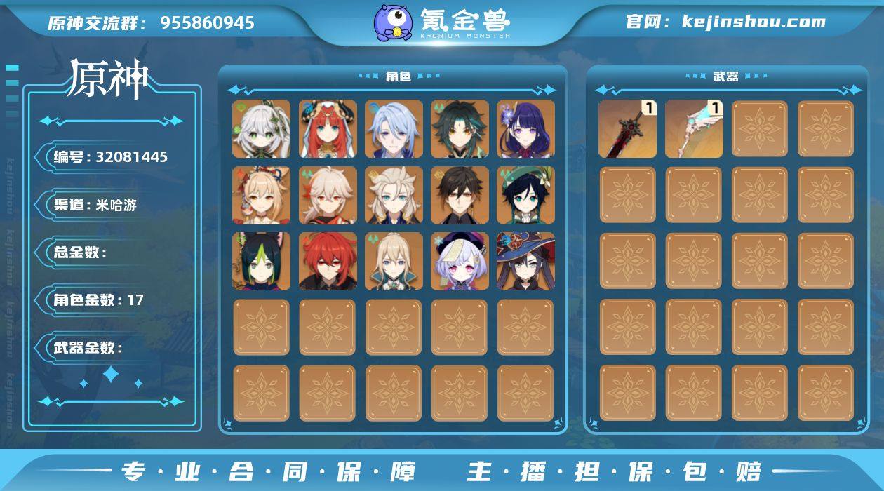 【金色角色】:纳西妲(0命),妮露(0命),提纳里(0命),神里绫人(0命),雷电将军(0命),宵宫(0命),枫原万叶(0命),魈(0命),阿贝多(0命),钟离(0命),温迪(0命),琴(0命),迪卢克(0命),莫娜(0命),七七(0命) 【拥有武器】:狼的末路(精1),天空之翼(精1) 【紫色角色】:瑶瑶(0命),珐露珊(1命),坎蒂丝(1命),多莉(1命),柯莱(3命),鹿野院平藏(0命),久岐忍(1命),云堇(满命),五郎(0命),托马(2命),九条裟罗(1命),早柚(4命),烟绯(5命),罗莎莉亚(0命),辛焱(满命),迪奥娜(满命),砂糖(3命),雷泽(3命),菲谢尔(3命),丽莎(1命),北斗(5命),香菱(5命),安柏(0命),班尼特(2命),行秋(5命),芭芭拉(满命),凝光(2命),诺艾尔(2命),凯亚(1命),重云(3命)