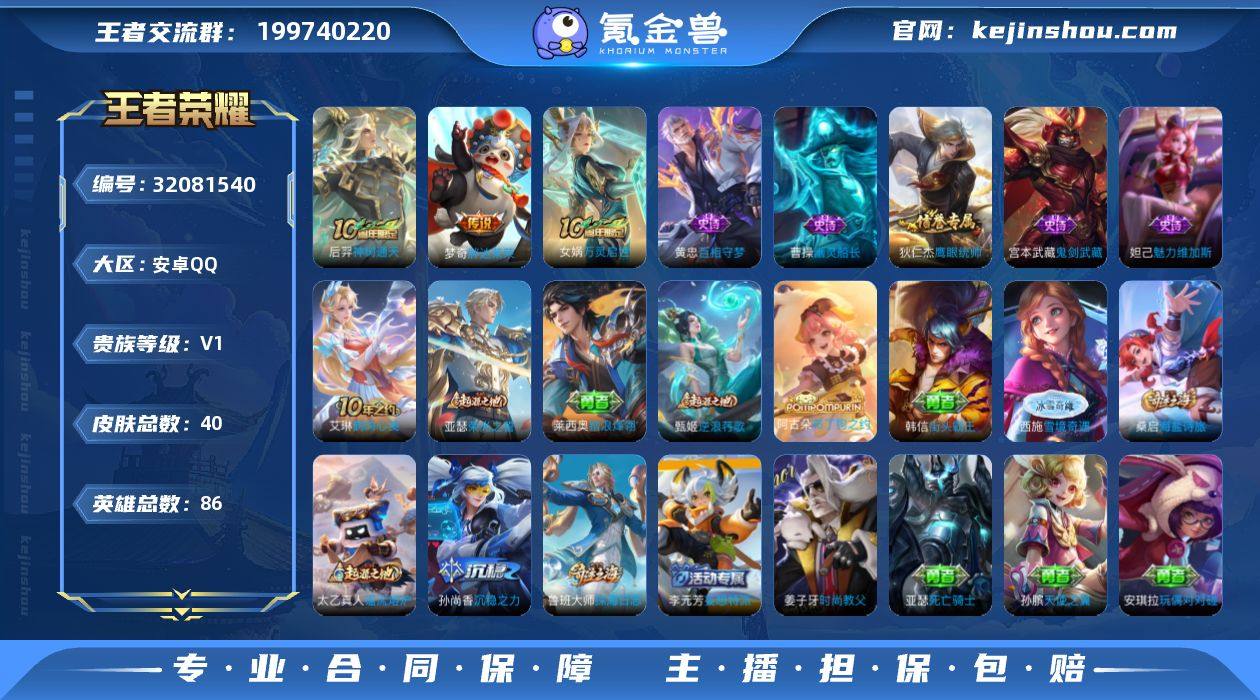 安卓Q-V0-至尊星耀III段位-86英雄-40皮肤-2传说-6史诗【传说皮肤】:后羿神树通天,梦奇胖达荣荣【限定皮肤】:狄仁杰阴阳师,沈梦溪大漠名商,鲁班大师探海日志,桑启海盐诗旅【赛季限定】:沈梦溪大漠名商,桑启海盐诗旅,鲁班大师探海日志,太乙真人谧流熔炉,甄姬逆浪荇歌,亚瑟荣光之誓【史诗皮肤】:女娲万灵启世,黄忠百相守梦,狄仁杰鹰眼统帅,曹操幽灵船长,妲己魅力维加斯,宫本武藏鬼剑武藏【其他皮肤】:艾琳鹤鸣心笺,张良罗小黑战记,亚瑟荣光之誓,哪吒罗小黑战记,莱西奥踏浪烽翎,甄姬逆浪荇歌,阿古朵布丁狗之约,西施雪境奇遇,太乙真人谧流熔炉,李元芳妄想特派,鲁班大师探海日志,桑启海盐诗旅,沈梦溪大漠名商,诸葛亮掌控之力,孙尚香沉稳之力,狄仁杰阴阳师,宫本武藏万象初新,甄姬花好人间,亚瑟死亡骑士,姜子牙时尚教父,孙膑天使之翼,安琪拉玩偶对对碰,宫本武藏未来纪元,韩信街头霸王,澜孤猎,百里守约绝影神枪,铠龙域领主,黄忠芝加哥教父,后羿精灵王,孙悟空西部大镖客,钟无艳生化警戒,鲁班七号福禄兄弟【营地ID】:1607384635