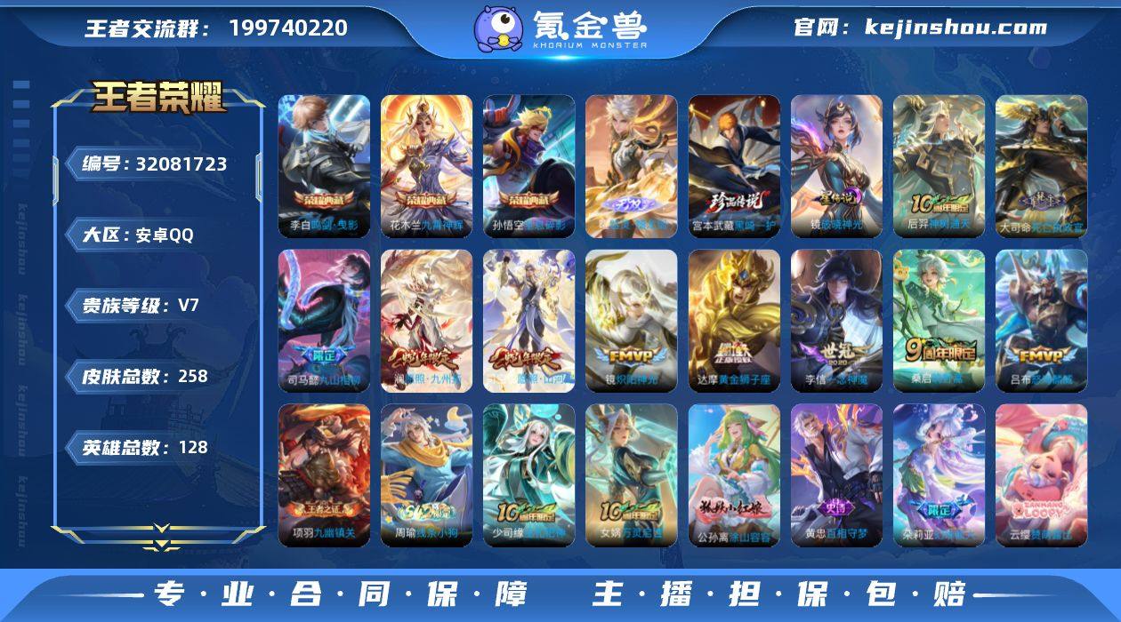 AHC50237,,,1星传说--9按键--钱包实名未注销,,,,,安卓Q-V7-至尊星耀I段位-128英雄-258皮肤-3典藏皮肤-1无双-1珍品传说-10传说-82史诗 【英雄全皮】:司马懿全皮,司空震全皮,影全皮 【荣耀典藏】:孙悟空全息碎影,李白鸣剑曳影,花木兰九霄神辉 【无双皮肤】:曜器灵螭龙剑 【珍品传说】:宫本武藏黑崎一护 【传说皮肤】:后羿神树通天,大司命死亡执政官,司马懿九山相柳,司空震愿照山河定,澜愿照九州拓,桑启鸣野蒿,吕布怒海麟威,镜炽阳神光,李信一念神魔,达摩黄金狮子座 【限定皮肤】:蔡文姬夏日便利店,虞姬夏日便利店,狄仁杰阴阳师,赵云皇家上将,墨子神迹守卫,阿轲迷踪丽影,白起夜都怪侠,元歌无心,马可波罗暗影游猎,狄仁杰魔术师,达摩沙漠行僧,项羽海滩派对,王昭君午后时光,兰陵王金庭之子,李元芳云中旅人,干将莫邪胡桃夹子,雅典娜黎明之约,鬼谷子五谷丰年,铠青龙志,沈梦溪大漠名商,明世隐吟游魔法,裴擒虎李小龙,裴擒虎擒涛扼浪,狂铁电玩高手,嫦娥暖冬兔眠,西施玲珑珍味,鲁班大师探海日志,桑启海盐诗旅,暃星界游侠,戈娅驭风魔法,艾琳流音漫舞,司空震地狱燃心,阿古朵江河有灵,张良古海寻踪,蒙犽百解令,蒙恬荣光圣徽,高渐离燃音魔法,妲己灵卜魔法,鬼谷子天穹祈灯,姬小满妄想食味,沈梦溪龙舞盛年,刘邦剑破天穹,程咬金群星魔术团,镜青焰无极,项羽苍威无极,周瑜熔金海岸 【年限皮肤】:铠青龙志,司空震愿照山河定,澜愿照九州拓 【赛季限定】:达摩沙漠行僧,兰陵王金庭之子,沈梦溪大漠名商,李元芳云中旅人,桑启海盐诗旅,裴擒虎擒涛扼浪,鲁班大师探海日志,张良古海寻踪,鬼谷子天穹祈灯,刘邦剑破天穹,东皇太一噬灭天穹,太乙真人谧流熔炉,钟馗虚灵犬护,甄姬逆浪荇歌,亚瑟荣光之誓,雅典娜黎明之约,蒙恬荣光圣徽,牛魔星界战将,项羽九...