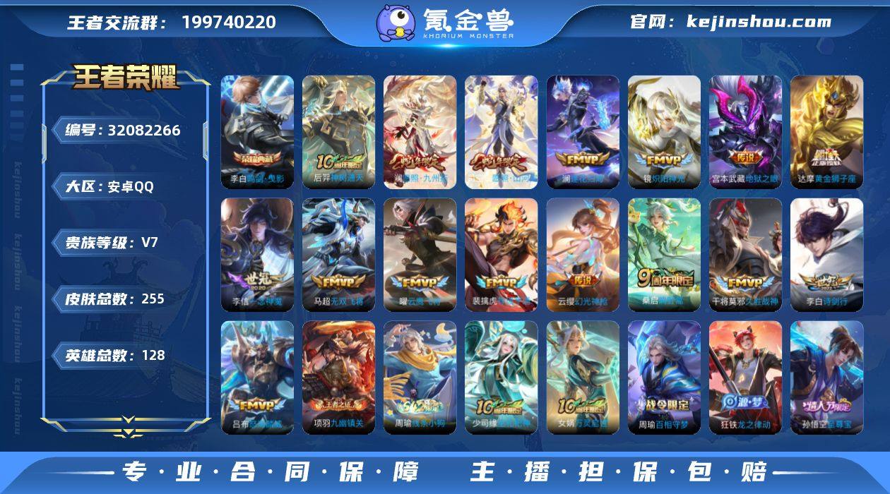 安卓Q 可二次 1典藏16传说128英雄255皮肤 鸣剑曳影 逐花归海 神树通天 幻光神枪 祥瑞亨通 愿照九州拓 愿照山河定 鸣野蒿 无双飞将 怒海麟威 诗剑行 炽阳神光 云鹰飞将 久胜战神 一念神魔 黄金狮子座 地狱之眼 万灵启世 巫礼祀神 神威 至尊宝 谪仙醉月 山海玄木吟 傲雪梅枪 百木心枪 乒乒小将 拒霜思 匿光追影者 神迹守卫钟馗 暗影游猎 原初追逐者 器灵浮梦炉 星界特工 东方月初 原初探秘者 李小龙 水晶猎龙者 猫狗日记男 金属风暴 特工魅影 优雅恋人 胡桃夹子 逐浪之夏 修罗 白龙吟 千年之狐 紫霞仙子 功夫厨神 圣诞恋歌 幽灵船长 乘风破浪 星夜王子 赏金猎手 天才门将 暗夜贵公子 偶像歌手 街头霸王 箭羽风息 暗渊魔法 王者荣耀账号