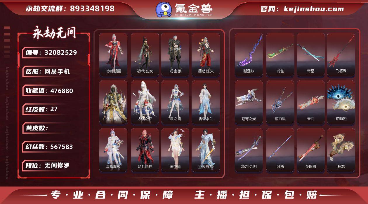 WJ5169,网易手机,4月6日可换绑,三人段位无间修罗,1274金砖,56万幻丝,27红,752金,凶虎,神君印,墨离,少阳剑,断昼吟,2674九阴,帝星,龙雀,烈阳,狼主,飞将戟,涯角,逆晦朔,狂龙,惊百里,天罚,苍穹之光,赤皓新囍,初代玄女,星辉魔纱,化生明王,戎金狼,熛怒炼火,人偶之梦,海之奇,香雪水兰,监兵凶神,画中仙,征天白龙,精武魂,过江龙,昭夏流金,高校水着,热海白珊,弄潮逐浪,半夏晚风,飞鼠,翠影,无相印,白鹿,劫涛潮,学宫之杖,腾云歌,夜华朝,悠竹萌客,九骊之君,鹅黄纱梦,暗沼摩罗,黄庭道,祸津素盏,福瑞天泽,赤阳天狐,夜绸袍,獬豸,逆天劫魂花,男性发型14,活动中心手机绑定无法解绑,
