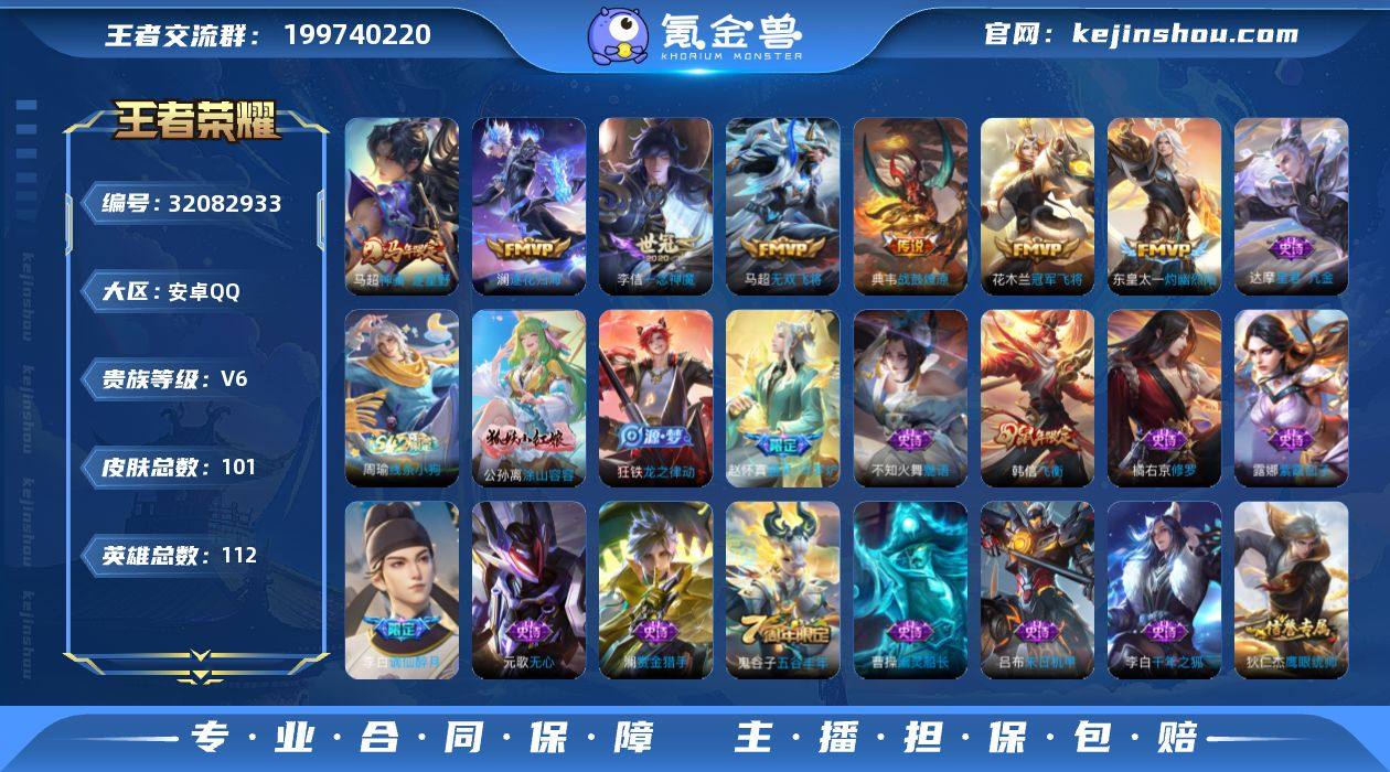 【WZN5772】贵族6/皮肤101/传说7/史诗32/英雄112/马超神骥逐星野/典韦战鼓燎原/澜逐花归海/灼幽烈阳/无双飞将/一念神魔/冠军飞将/谪仙醉月/阴阳师/皇家上将/奇幻香踪/无心/魔术师/沙漠行僧(s26)/海滩派对/飞衡/金庭之子(s27)/云中旅人(s29)/潮玩骑兵/五谷丰年/千军破阵(s25)/大漠名商(s28)/擒涛扼浪(s31)/探海日志(s32)/海盐诗旅(s30)/古海寻踪(s33)/芈月浮光幕影/荣光之誓/线条小狗-周瑜/达摩星君亢金/涂山容容/龙之律动/器灵·浮梦炉/万物之道/赏金猎手/修罗/魅语/鹰眼统帅/猫狗日记-孙策/舞动绿茵/特工魅影/冰冠公主/心灵战警/黄金分割率/末日机甲-吕布/千年之狐/幽灵船长/圣诞狂欢/魅力维加斯/摇滚巨星/水果甜心/地狱岩魂/紫霞仙子/吕布舞狮寰/班班快跑/溯影追猎/极光幻客/雪境奇遇-西施/零食大作战/劲辣红锅/太极少年/幻泉雾影-海月/危途狂花/蔚蓝守将/唤灵魔甲/特工战影/野性能量/掌控之力/沉稳之力/功夫老勺/幻想奇妙夜/汉昭烈帝/万象初新/五福同心/兔女郎/死亡骑士/救世之瞳/化身博士/白色死神/白执事/哥特玫瑰/街头霸王/教廷特使/幸存者/归虚梦演-曜/森/创世神祝/灼热之刃/午夜歌剧院/绝影神枪/龙域领主/第七人偶/三太子/激情绿茵/战争女神/范海辛/西部大镖客-孙悟空/超能战警/潮流仙人/生化警戒/帝国元帅