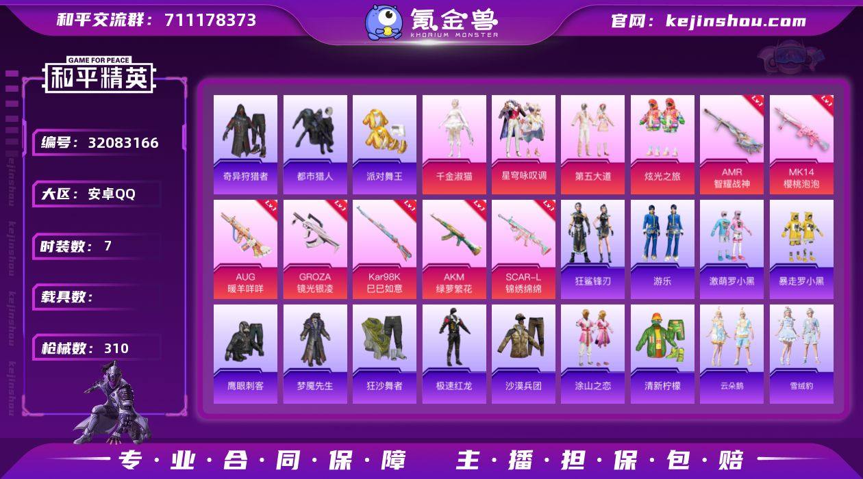 M1046715【身法号7粉装-14特效枪 暴走罗小黑,奇异狩猎者,浪漫天命,都市猎人,狂沙舞者,激萌罗小黑,派对舞王 AUG-暖羊咩咩[5级]】安卓手Q-7粉装-14特效枪-215套装-310枪皮-12王牌印记-荣耀皇冠Ⅰ-92123热力值【7粉装】炫光之旅,第五大道,星穹咏叹调,角色-千金淑猫,角色-异瞳寒姬,角色-绯穹魔姬,角色-花灵【14特效枪】MG-36-沧焰双生[5级],Mk14-樱桃泡泡[3级],UMP45-萌骑冒险[4级],Kar98K-巳巳如意[5级],DP-28-豹影疾电[5级],AKS-74U-森灵之息[5级],AKM-绿萝繁花[5级],Mk14-甜梦熊击[5级],Mk14-福马献瑞[5级],AUG-暖羊咩咩[5级],GROZA-镜光银凌[5级],AKM-暮色玫影[3级],SCAR-L-锦绣绵绵[5级],AMR-智耀战神[7级]【11稀有】暴走罗小黑,奇异狩猎者,浪漫天命,都市猎人,狂沙舞者,激萌罗小黑,派对舞王,M762-奇异狩猎者,S686-奇异狩猎者,M24-奇异狩猎者,AKM-奇异狩猎者【14飞行器】登顶巅峰飞行器,光之冒险尾迹,暮色之舞飞行器,顶峰精英尾迹,终晖之翼飞行器,鸡智如我飞行器,春暖花开飞行器,破刃行动尾迹,狂鲨锋刃飞行器,云朵驼驼飞行器,异域银装飞行器,空岛之星尾迹,炫彩糖果飞行器,招财竹蜻蜓飞行器【2头盔】梦幻火箭头盔,幻影战神头盔【1背包】幻影战神背包【493其它衣服和枪皮】大橘大利,SS37特训,炫彩糖果,SS36特训,淡雅花蕊,红釉青花,青玉碎影,SS28特训,火种守卫者,坚韧舞者,画境星梦,狙击之神,橘黑制服,幻世保卫者,SS22特训,SS33特训,深蓝色名流,特训学院,麻辣教官,擎苍青焰,森林游猎者,棉花软糖,雏菊兔兔,糖糖葫芦,璀璨流光,星影赞美诗,猛禽,黄色名流,福马献瑞,战地督导,冷焰舞者,SS27特训,千禧之恋,探宝勇士,都市漫游者,蓝海鲸歌,游乐,朱霞炽焰,莱茵河畔,星途旅人,血色贵族,快闪甜心,冰冻风暴,霓虹街区,元气发射,战术大师,锦衣飞扬,耀粉歌者,幽夜迷踪,角色-紫俏灵猫,惊鸿